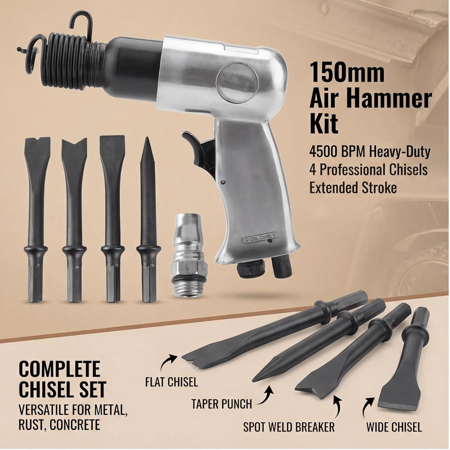 | Included Components | 4 Chisel Punch Bits, Air Hammer Tool, Industrial Handle, Straight Type Pneumatic Hammer |