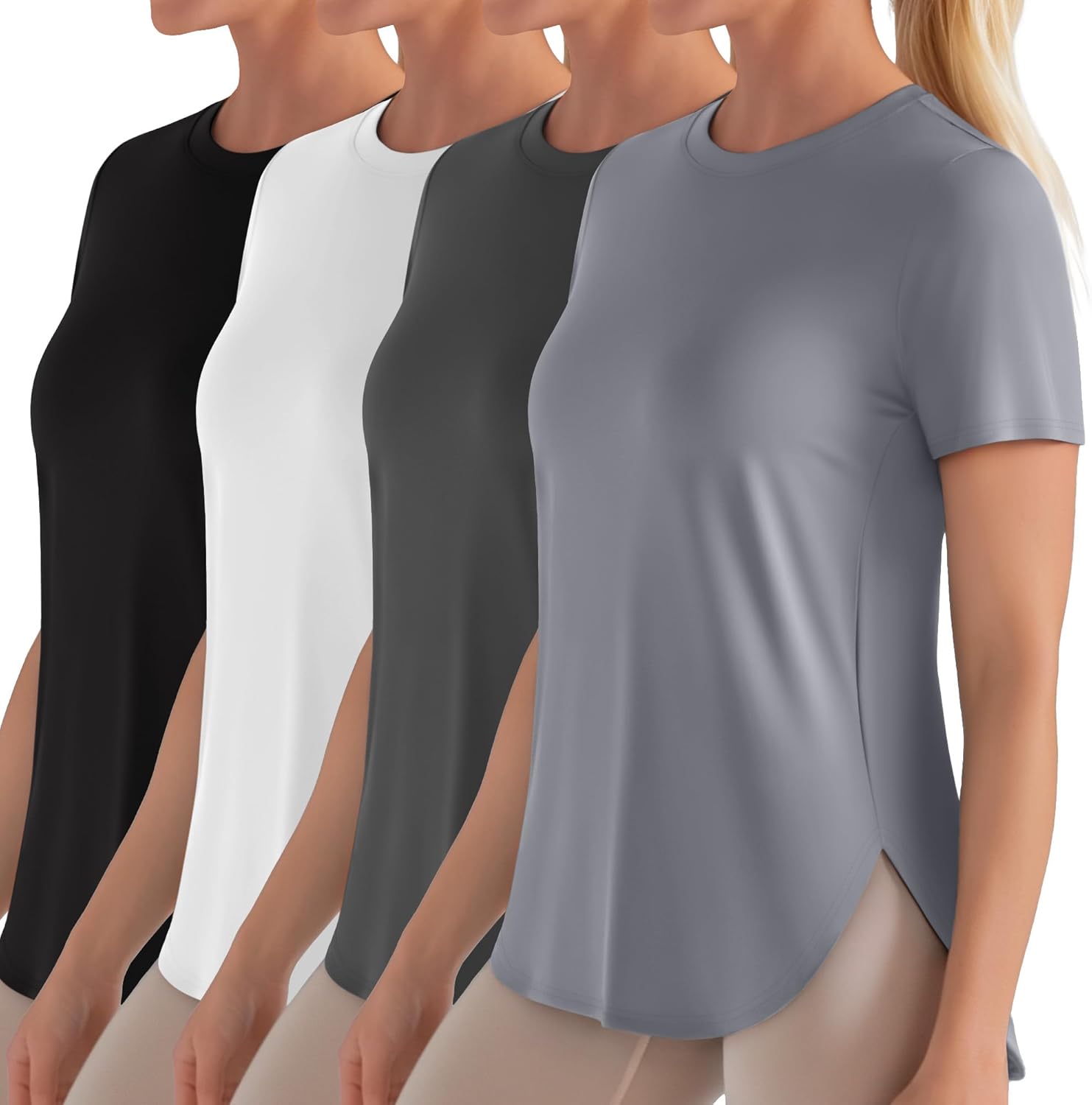 Features: These shirts are suitable for a range of occasions from sun protection to fitness sessions, vacation, work, and gym. They are also ideal for both workout and casual wear. Gift yourself the leisure of sun protection, coupled with breathability. The material not only provides UPF 50+ sun protection but also ensures easy air circulation to keep you cool. Specifications: Material: 95% Polyester, 5% Spandex Size: from S to XXL Package includes: 4 x women workout shirts Notes: Manual measurement, please allow slight errors on size. The color may exist a slight difference due to different screen displays.