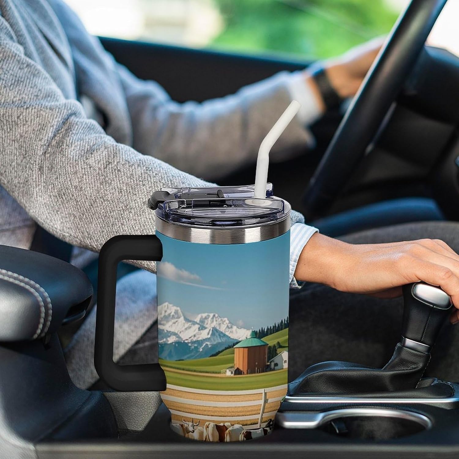 Stay refreshed and hydrated throughout the day with our 40oz stainless steel tumbler. Whether you're starting your morning with a hot cup of coffee, enjoying an iced tea during a busy workday, or quenching your thirst after a workout, this travel tumbler has got you covered. Why choose this spill proof Tractor Milk Farm dad tumbler? What you get: 1 x 40 oz tumbler with ergonomic handle; 1 x leakproof lids; 1 x stainless steel straw; 1 x short silicone straw; 1 x reusable straw brush. Insulated tumbler is also built to last, with food grade 304 stainless steel construction that is resistant to rust, corrosion, and breakage. The double wall vacuum insulation technology ensures that your drinks stay at the desired temperature for hours, so you can savor every sip. The leak-proof lid provides peace of mind, preventing spills and leaks even when you're on the move. This large capacity 40 oz coffee mug cup can hold enough of your favorite beverage to energize you for hours, including water, coffee, cocoa, milk, wine, beer, tea, juice, soda, cocktails, champagne, smoothies, or favorite beverages. Its cup holder friendly design allows you to easily take it with you in the car, to the office, while driving, working, camping, at the beach, running, traveling, exercising, yoga, picnics, workouts, the gym, and outdoor adventures. Fathers day cups for dad, coffee tumbler, custom Tractor Milk Farm tumbler, teacher Tractor Milk Farm water bottle, commuter mug, travel cup. Invest in a insulated mug that combines style, functionality, and durability. Order your personalized thermal cup today and experience the difference for yourself!