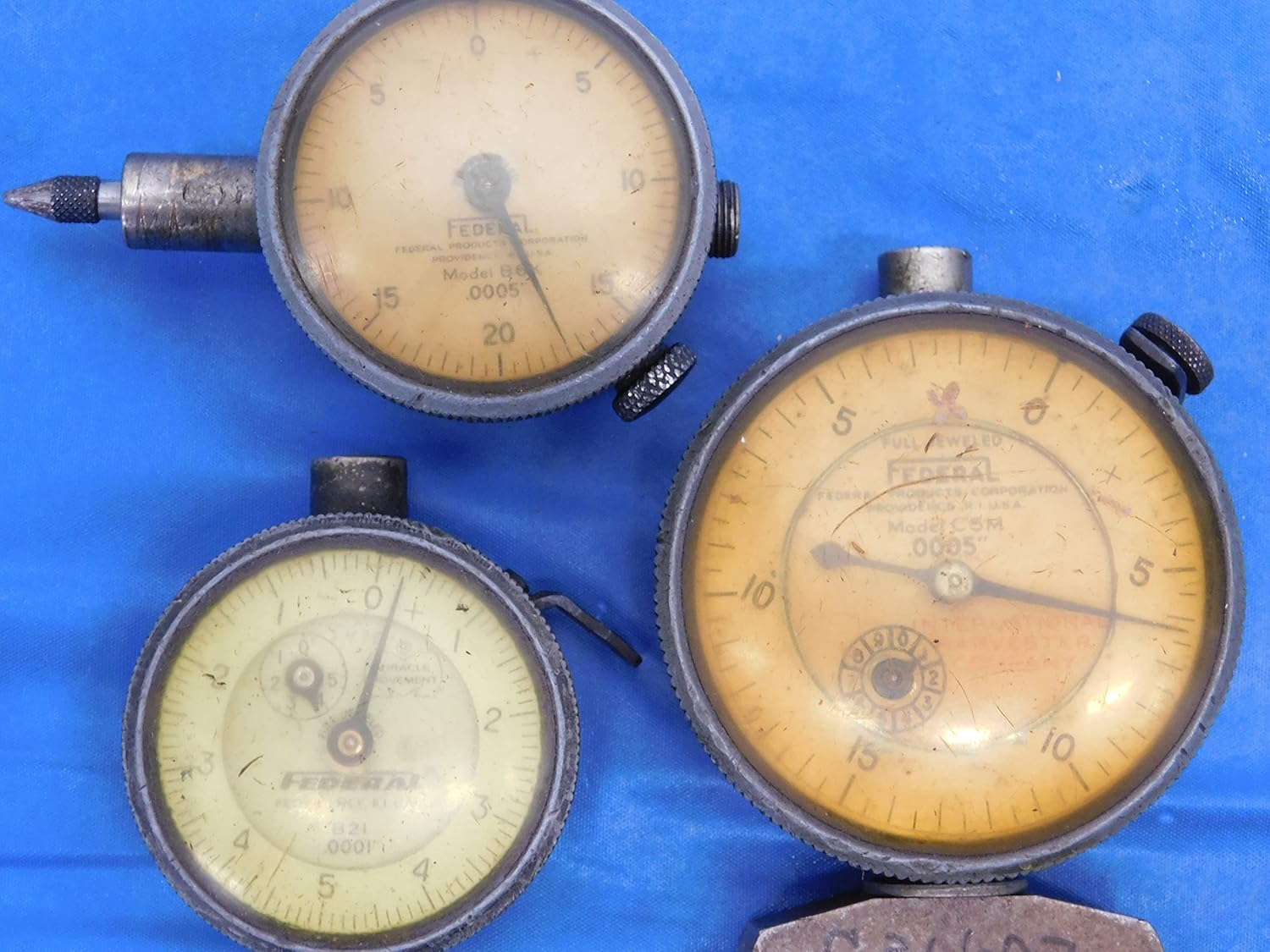 YOU ARE PURCHASING THE PICTUREDITEM.SOLD BY M & J TOOLING LLCDAYTON, OHIOPRODUCT SPECIFICATIONS AND / OR LABELING:CONDITION: USEDTHESE HAVE NOT BEEN CALIBRATED. THEY APPEAR TO BE FUNCTIONING PROPERLY BUT HAVE NOT BEEN FULLY TESTED.SIZE / LABELING:INCLUDES MODELS: C8I (.001") C6K (.0005") C5M (.0005") B21 (.0001") B6K (.0005")MANUFACTURER / BRAND:FEDERALTHANK YOU FOR YOUR BUSINESS!LOCATION: WB5-2-7-11