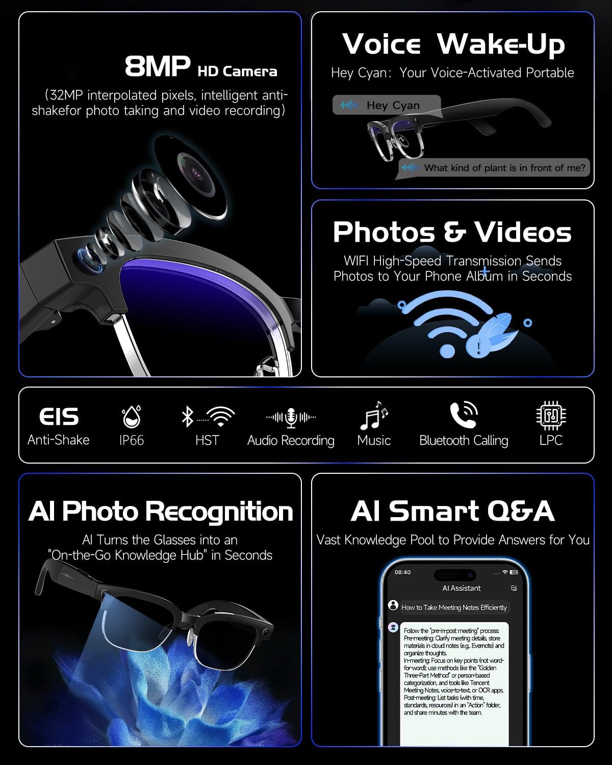| BuiltIn Media | Camera Glasses, Charging Cable, User Manual |