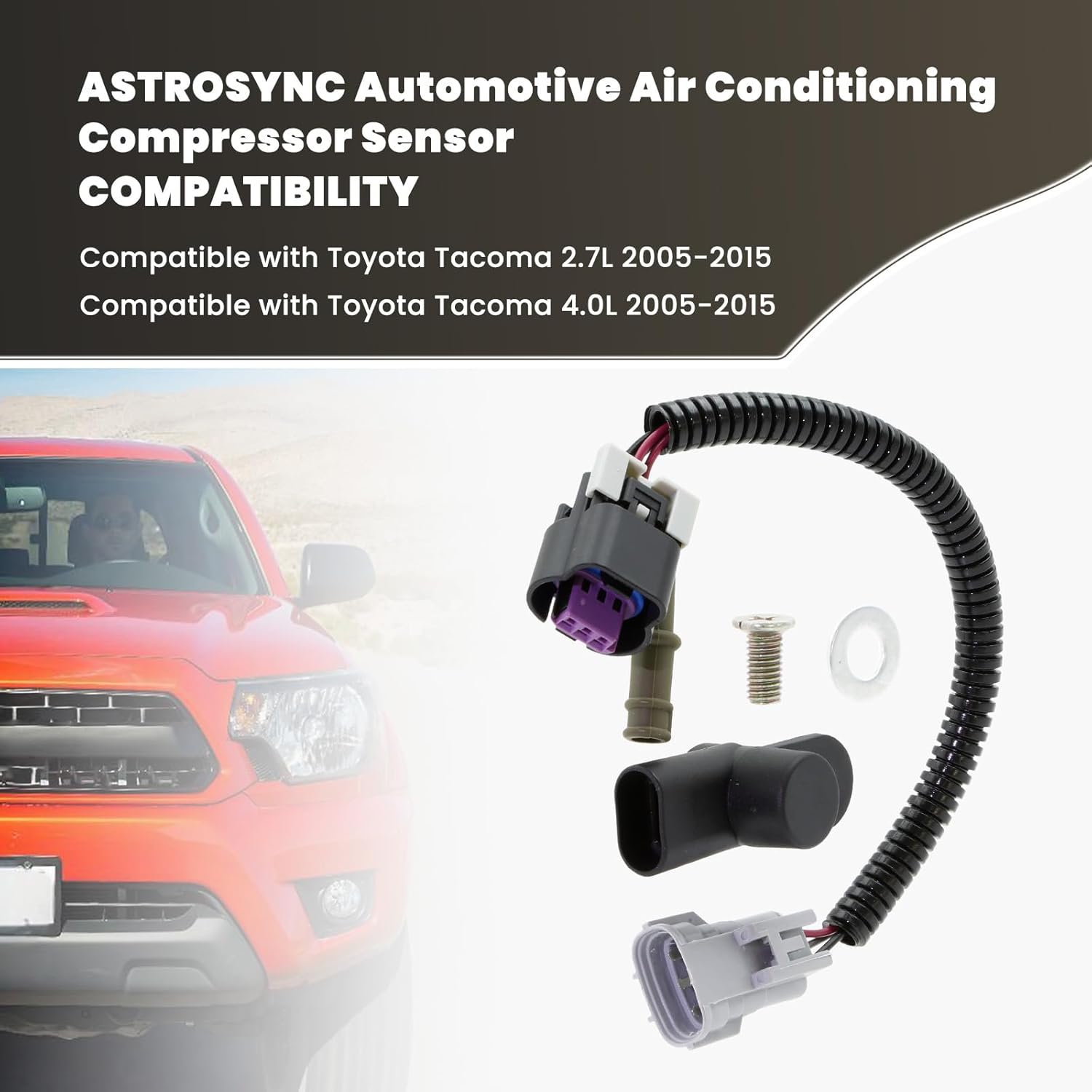 ASTROSYNC Automotive Air Conditioning Compressor SensorCOMPATIBILITY:Compatible with Toyota Tacoma 2.7L 2005 2006 2007 2008 2009 2010 2011 2012 2013 2014 2015Compatible with Toyota Tacoma 4.0L 2005 2006 2007 2008 2009 2010 2011 2012 2013 2014 2015REPLACE PART NUMBER:The AC Compressor Sensor Replace FH677-SSR FH677SSRProduct Features:- Premium QualityThe Air Conditioning Compressor Sensor is Made of high-quality material, durable and reliable, longer service life- Easy InstallationDirect replacement, plug and play, easy to install. Professional installation is highly recommendedProduct Function:This Automotive Air Conditioning Compressor Sensor monitors refrigerant pressure to optimize cooling efficiency and protect your AC compressorPackage including:1Pc Automotive Air Conditioning Compressor Sensor