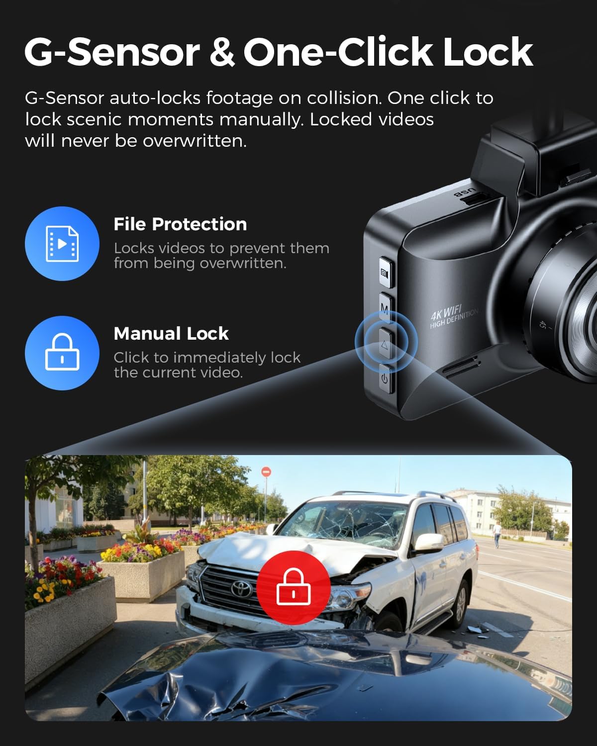 | Other Special Features of the Product | App Control, Automatic Incident Detection, Built-In Display, Compact Design, Loop Recording |