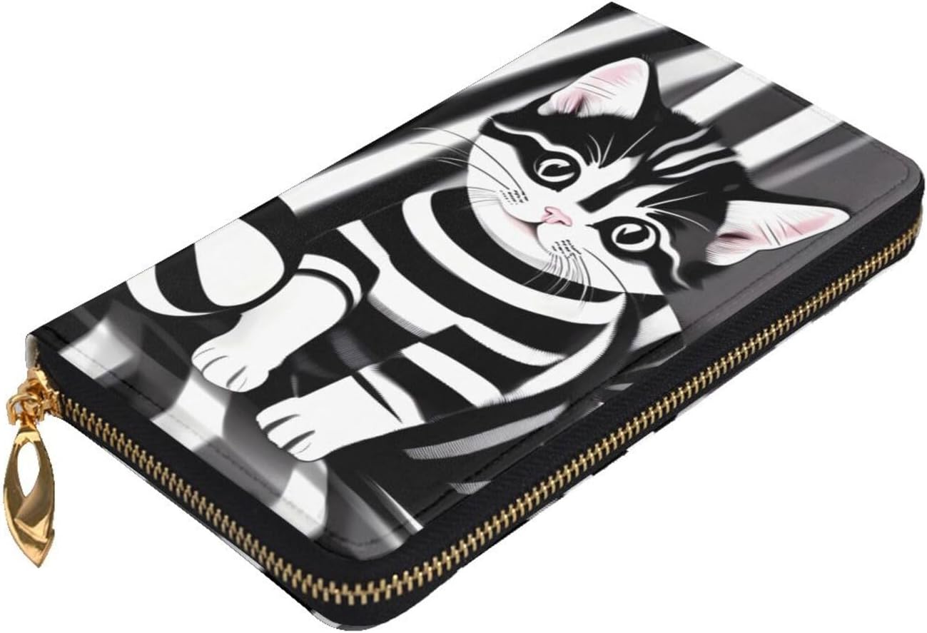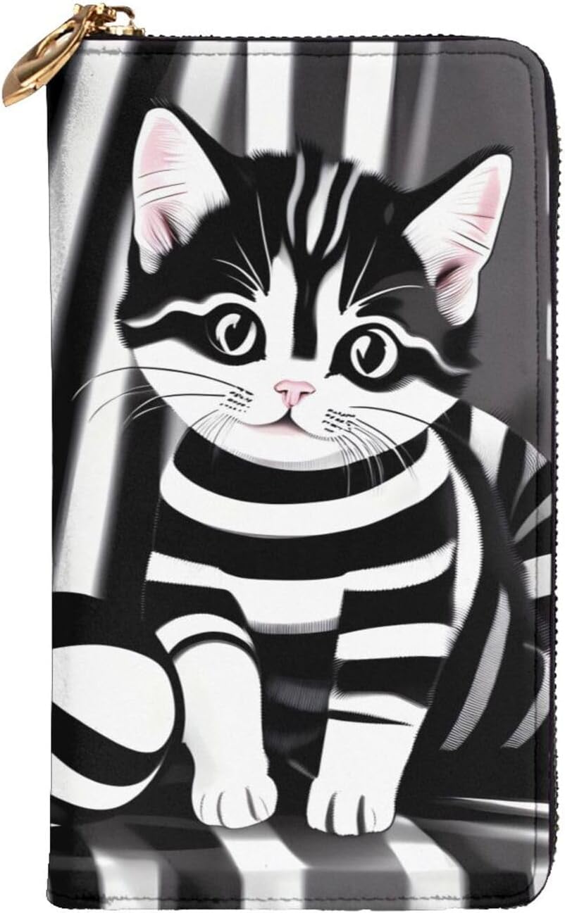 Black and white striped kitten This women's double-sided printed wallet is stylish, practical, and durable, helping you easily upgrade your daily life and meeting all your storage needs. The unique double-sided printed design showcases your personality and fashion sense, making it not just a wallet, but also a versatile fashion accessory that perfectly complements your everyday outfits. The scientifically designed internal structure maximizes storage space while maintaining a slim profile. With 12 credit card slots, 3 full-length cash pockets, 1 built-in zippered coin pocket, 1 hidden compartment, 1 document slot, 1 passbook slot, and 1 checkbook compartment, you can easily store all your daily essentials: credit cards, cash, coins, receipts, checkbook, ID, and even your mobile phone, keeping everything organized and within easy reach. Suitable for daily commutes, shopping, travel, work, and various other occasions.