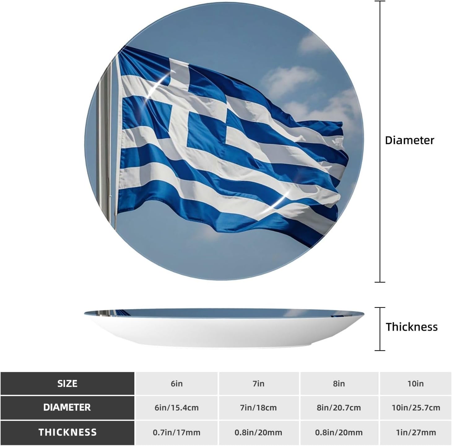 gokays decorative platedo you feel that your table is monotonous? Then use our decorative plate to add a little fun to the monotony of life.featuressize - 6 inch diameter;7 inch diameter;8 inch diameter;10 inch diametermaterial - ceramic design - greek flag package - 1 x ceramic decorative plate, 1 x stand, 1 x pothookwhy choose gokays decorative plates?advantageas manufacturers we follow current trends and bring you the latest home fashion. Salad plates ideal for placement at home or in the office. Traditional porcelain making technology, fine workmanship. Ceramic dinner plates is a good gift for family and friends.convenient to useour dinner plates rack for display has 2 ways to use, you can just place the bracket base on a flat surface first, and then put the plate on it, also you can stick the provided pothook at the back of the plate, and then stick the plate on the wall, you can choose the suitable installation method according to the actual situation.occasionour ceramic ornaments salad plates is a perfect decorative and collection for any niche, table, or mantle at your home. Perfect for your office, home, living room, dining room, playroom, kitchen, cafe, study, studio, club, bar, and others.in a surprise for your family and friends!porcelain dessert plates is a perfect gift for any person in your life. You can give it directly to your lover as mother's day gift/father's day gift/birthday gift/christmas gift/valentines day gift/anniversary gift/wedding gift/housewarming gift/new home gift.start with our funny decorative plate, refresh your rooms!