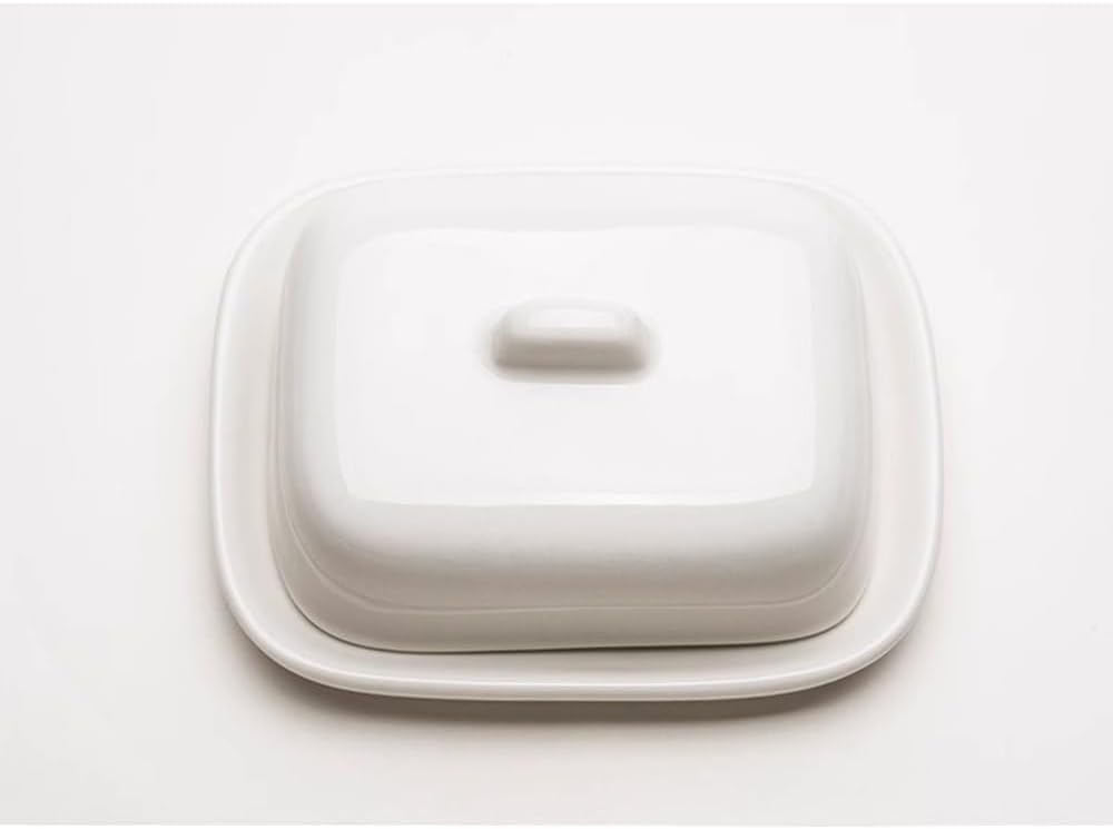 butter dish is advanced and bright, and it blends perfectly with other kitchen utensils. Visually increase the experience and enjoyment of food.White Ceramic Square European Style Pure White Ribbon Covered Porcelain Butter Plate Butter Dish Western Hotel TablewareProduct Name: Butter DishStyle: MinimalistMaterial: CeramicSize: 10.5 * 7 * 5MCraftsmanship: Enhanced durabilityShape: RectangularProduct color: White