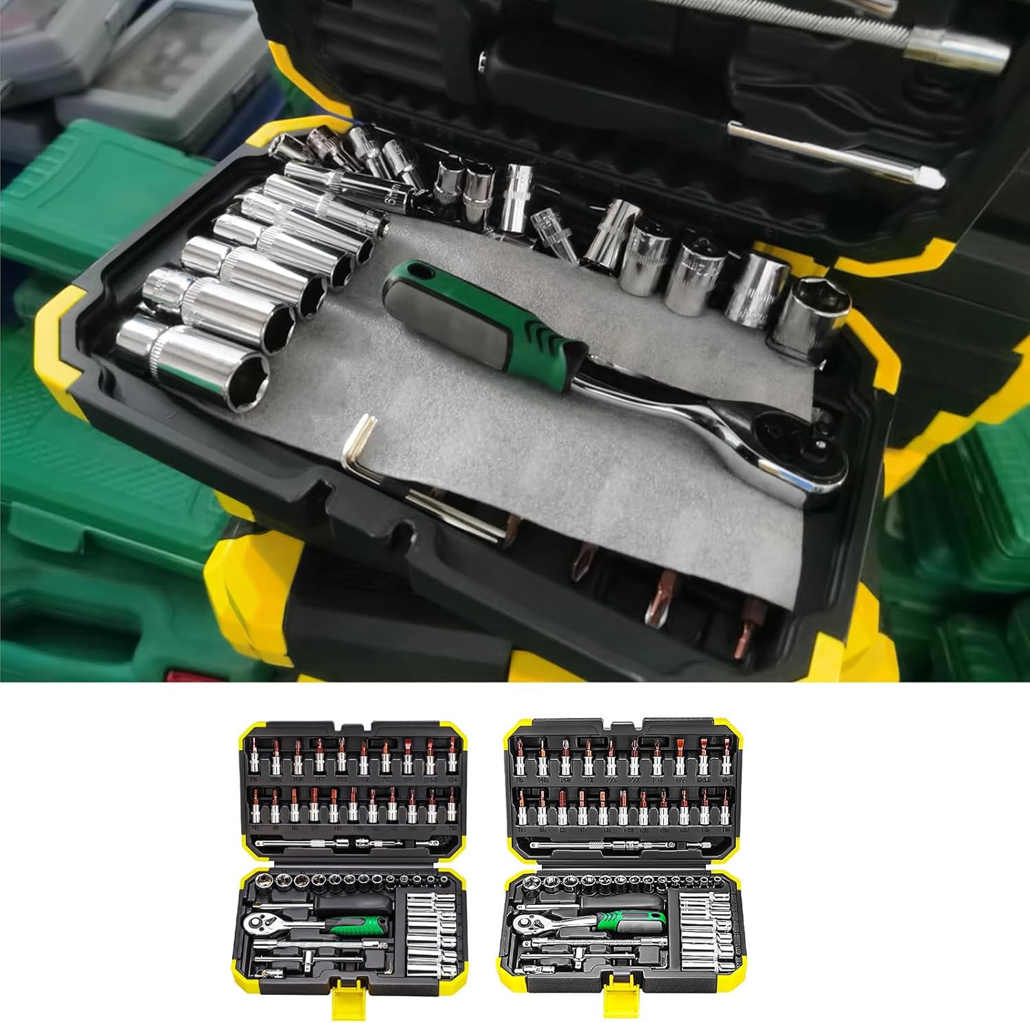 Completes 53Pcs 1/4 Inches Ratcheting Wrenches Set with Extension for Efficient Automotive and Home RepairsFeatures:Discover Precisions with 53Pcs Sockets Wrenches Set, featurings high Precisions ratcheting Wrenches that delivers strong torques for repair needs.from steel, this rusts tool set is ergonomically for comfortable use, ensuring longevitys and reliability in every task.for home users, enthusiasts, and professional automotive technicians, this set meets the demands of various repair scenarios.Perfect for automotive repair, home assembly, and everyday maintenance, this comprehensive tool tackles a wide ranges of fastening tasks.Enhances your toolkit with essential hand tool combination, engineered to provide efficiency and ease in both automotive and household applications.Specifications:Materials: MetalSize:23.8x15.4x6.4cm/9.37x6.06x2.52inchModel: 24 teeth, 72 teeth(optional)Package Includes:1Set Sockets Wrenches SetNote:Please allow 1-3cm error due to manual measurement. make sure you not mind before bid.Due to the differences between different monitors, the picture may not reflect the actual of the item.
