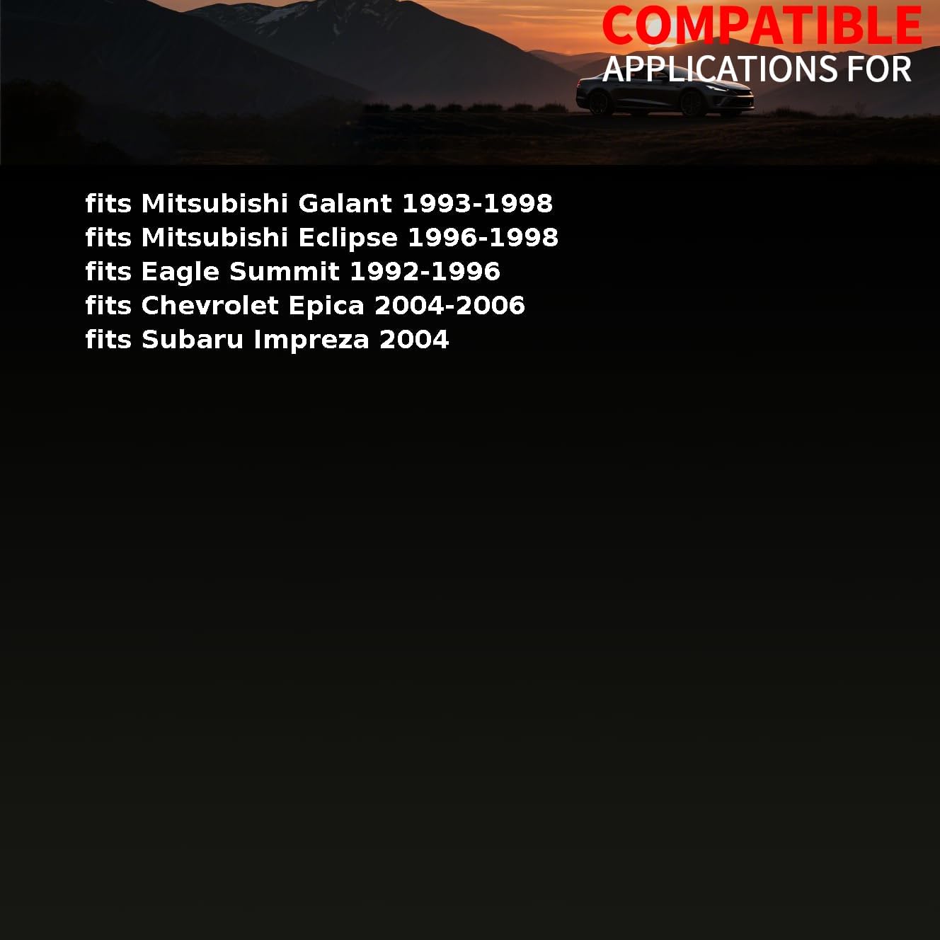• Fits Specific Models: CV Joint Boot, cv boot kit fits Chevrolet Epica 2004-2006 fits Eagle Summit 1992-1996 fits Mitsubishi Eclipse 1996-1998 fits Mitsubishi Galant 1993-1998 fits Subaru Impreza 2004