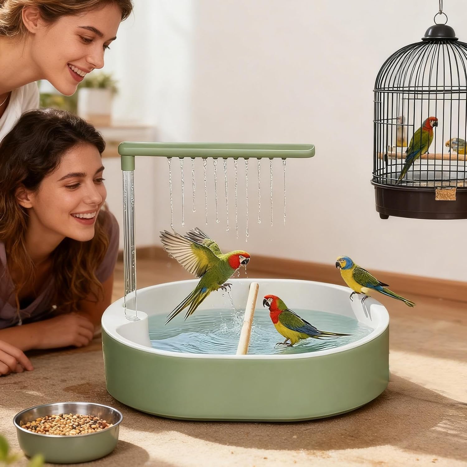 The automatic bird bath with USB pump is designed to provide a peaceful and splash-free bathing experience for your feathered companions. This innovative swimming pool features running water that mimics a natural stream, attracting finches, budgies, parakeets, cockatiels and other species. Its thoughtful design minimizes noise while maintaining an environment, making it suitable for both indoor and outdoor spaces such as the living room, backyard, balcony, terrace or patio. By providing a steady stream of well-maintained water, this bath encourages healthy grooming habits and keeps your pets entertained. The compact tub configuration integrates seamlessly into diverse environments, providing convenience without compromising functionality. Enhance your bird's hygiene routine with this practical and versatile bathing solution, designed to meet their instinctual needs safely and attractively. Specification Product Name: Parrot Shower Material: PP Product size: about 28x31.8x2 5cm/11.02x12.52x9.84inch Product weight: about 550g List 1 piece * bird bath Note: 1. Due to lighting effects and viewing angles, there may be color differences in the product. 2. Due to manual measurement, there may be errors in the product size, please understand.