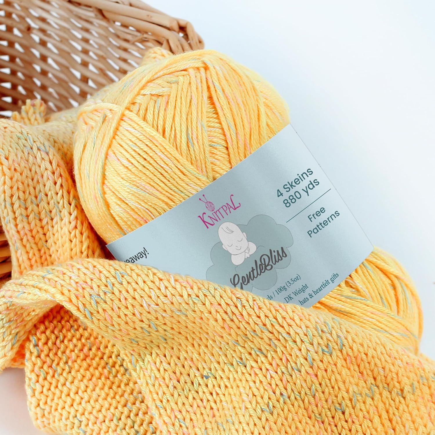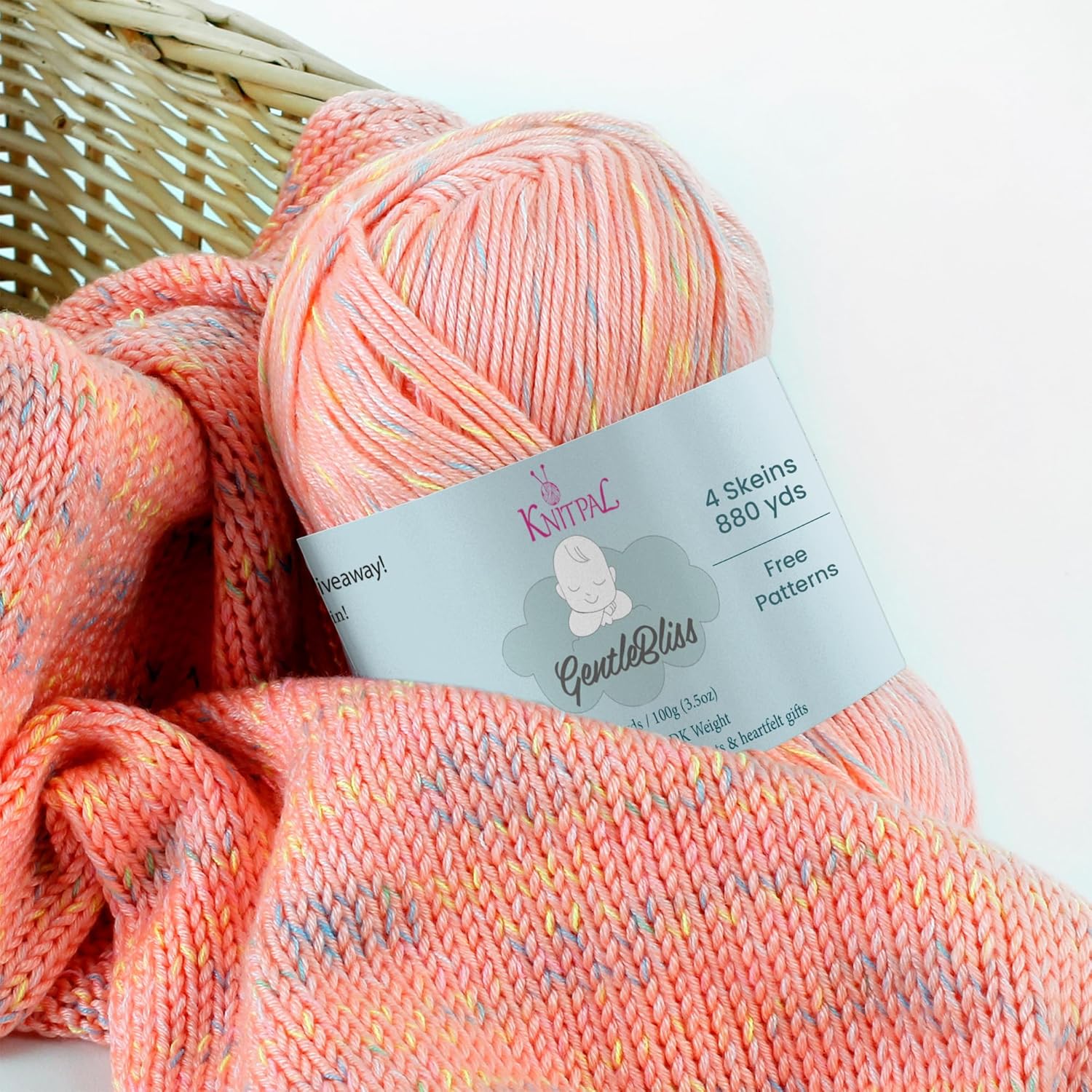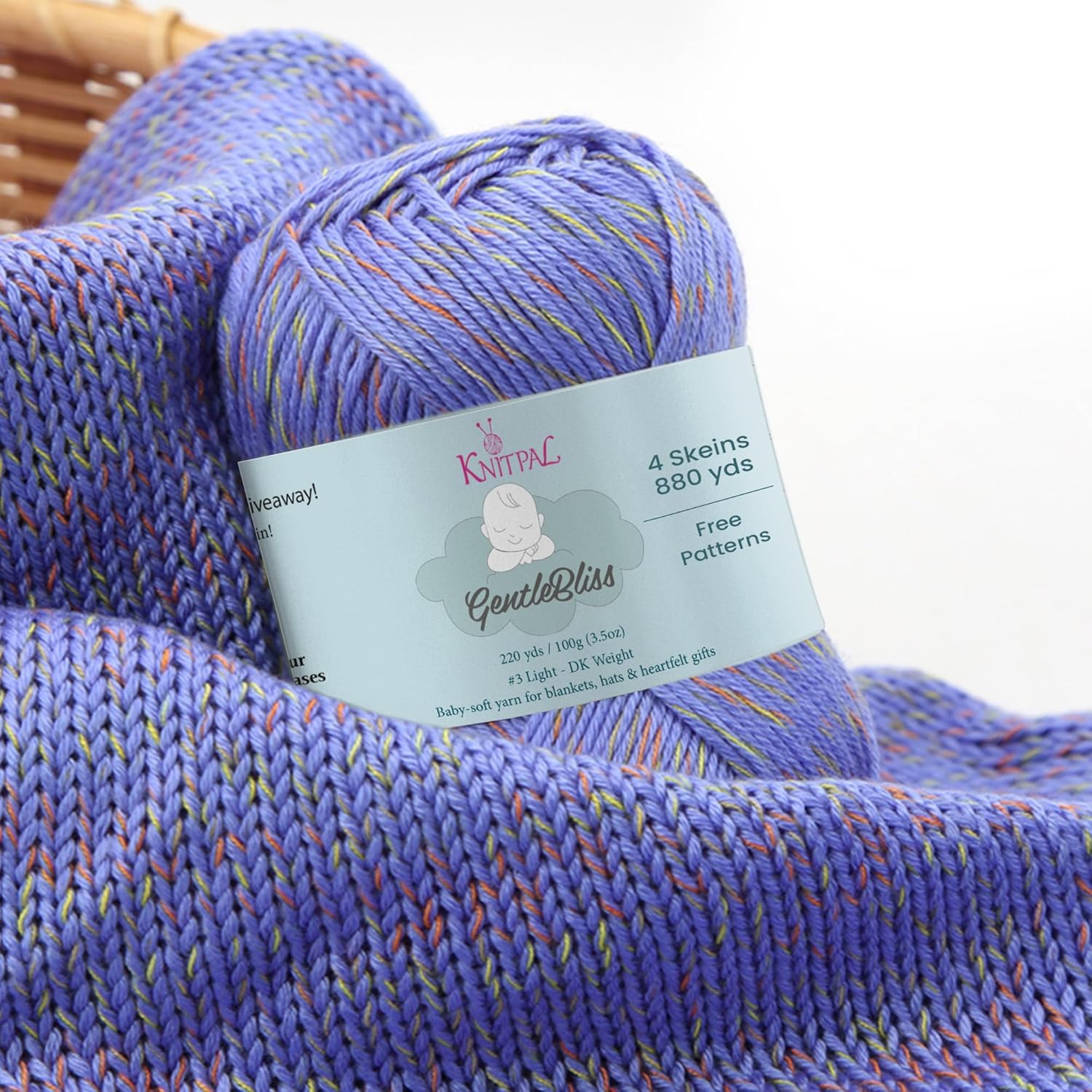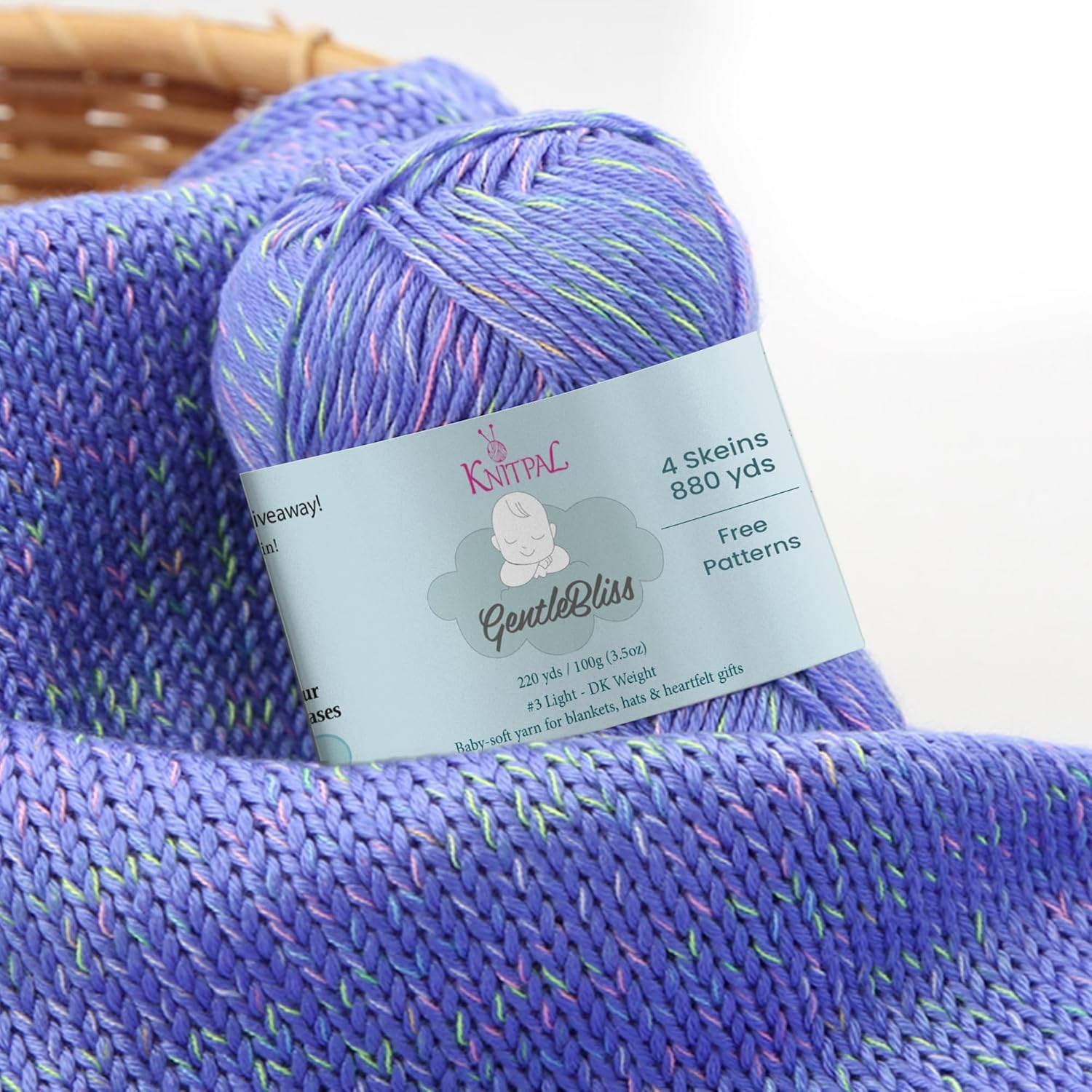 GentleBliss is a fantastic yarn for year-round knit and crochet projectsA 100% acrylic yarn, GentleBliss is next-to-skin soft and has a smooth, buttery finish. Consider GentleBliss when crafting for friends and family with sensitive skin or skin allergies. GentleBliss is especially suitable for baby blankets, garments, and accessories and is wonderful for all seasons. GentleBliss comes in a center-pull ball for ease when knitting and crocheting.A silky soft, smooth acrylic yarn with gorgeous lusterGentleBliss creates a baby soft fabric with the shine, luster, and feel of silk. Fabric is lightweight but warm, and suitable for all seasons. A crisp stitch definition and lofty finish create airy, sleek garments and accessories for adults, babies, and children.GentleBliss is a great baby blanket yarnAmple Yardage with 880 yards in 8 balls of yarn, each value pack of GentleBliss provides generous yardage to knit or crochet hats, scarves, mittens or fingerless mitts, or a small adult-sized top. GentleBliss is a fantastic baby yarn, perfect for baby blankets, or even a full baby garment set with hat, booties, and cardigan.GaugeDK weight with 14 WPI and a recommended needle size of US 6 (4mm) for 23 sts x 30 rows to 4” and recommended hook size of 7 (4.5mm) for 17 sts x 22 rows to 4”. A generous selection of versatile multicolors. GentleBliss offers a multicolor palette of colors with subtle variegation. Choose from timeless shades, elegant neutrals, and soft pastels. Each GentleBliss yarn pops with contrasting threads for an elevated color story.Quality FirstGentleBliss should not shed, fray, or break, and the yarn should remain colorfast when washing. Our top-quality yarns are durable and made to last a lifetime. We proudly stand behind our products and are pleased to offer a lifetime promise on our needles, crochet hooks, and yarns.