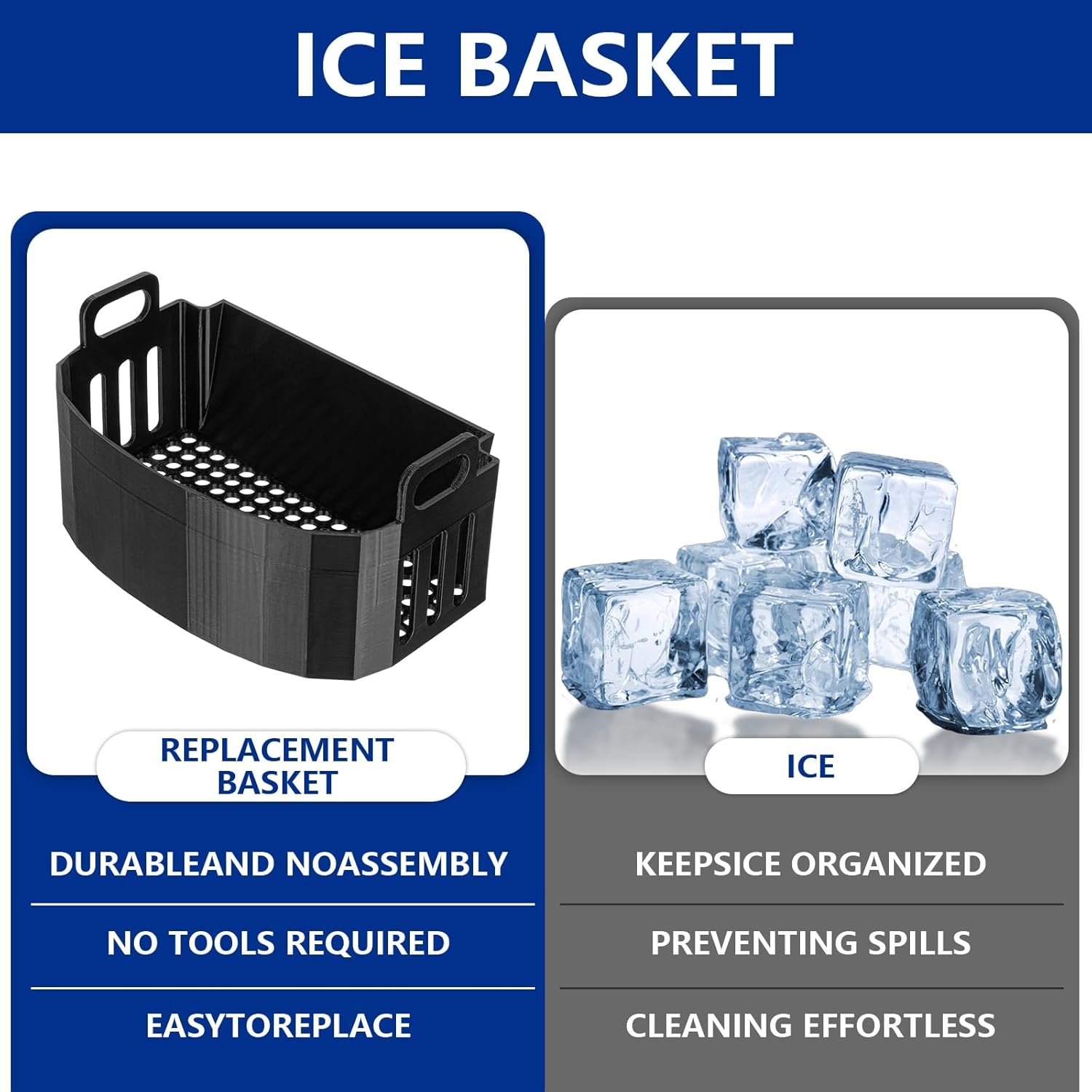 Upgrade your ice-making experience with our replacement ice basket. This basket is designed to fit seamlessly with most portable ice makers. Whether your original basket is damaged, lost, or worn, this replacement basket will perfectly restore the functionality of your device. Designed with user convenience in mind, this basket features an ergonomic handle for a secure and comfortable grip. This makes scooping and carrying ice easier than ever and reduces the risk of spills. Its simple, sturdy design makes installation quick—no tools or technical knowledge required. Simply place it in your ice maker and you're ready to go! Made of durable materials, this basket is built to last. Its smooth, easy-to-clean surface prevents ice buildup and ensures hygienic storage. Its optimized shape maximizes ice capacity while ensuring easy access.