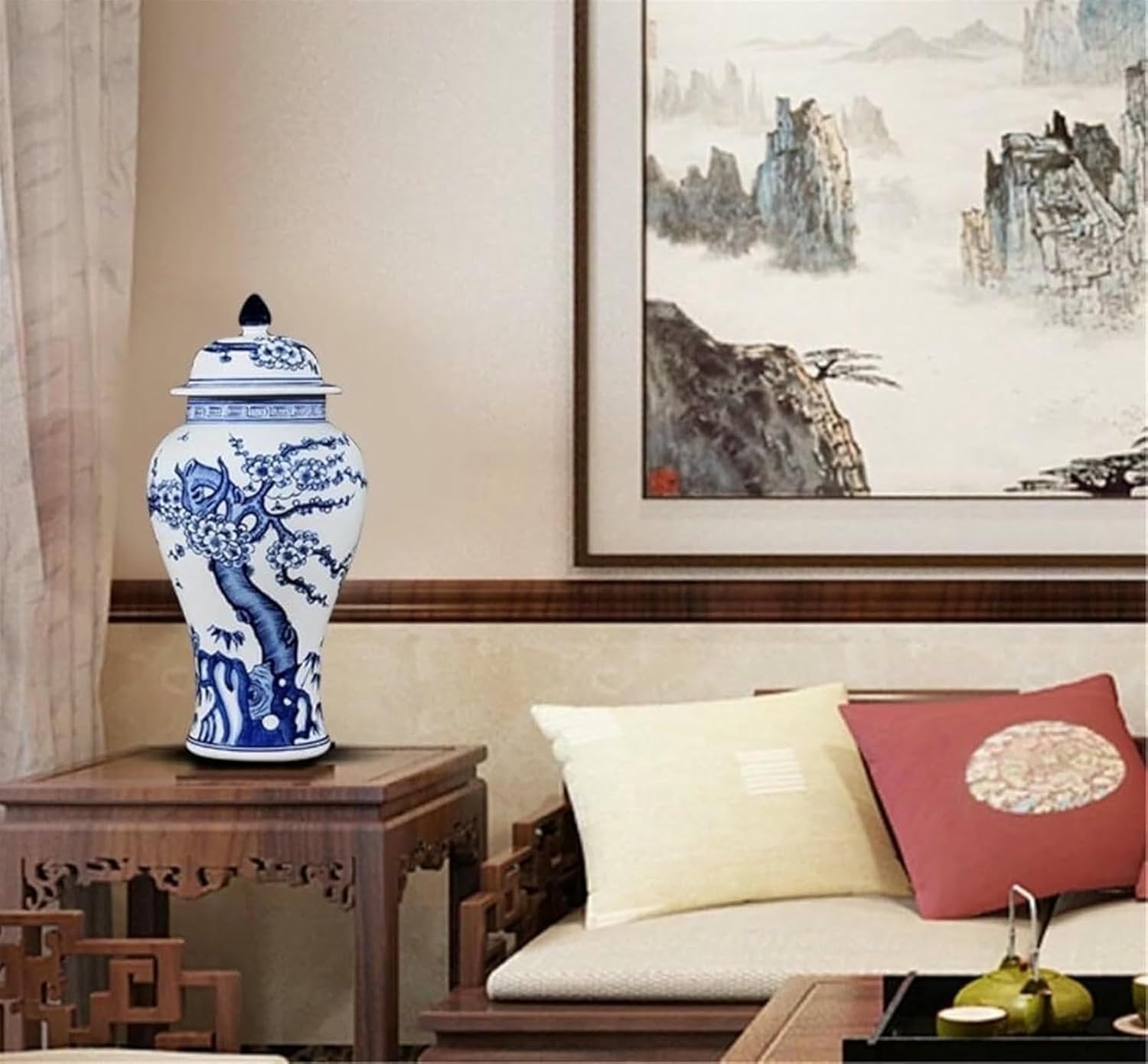 Perfect Gift: It can be used as a variety of holiday gifts to family, friends, colleagues, etc.Product name: Ginger jars Color: as shownMaterial: CeramicSize: 15*28cmFeatures: HandmadeUses: Home Decor, vases, storage jarsThe Product Includes: 1* ginger jar (excluding other exhibits)Designs: The lid looks like the warrior's helmet and the body of the jar means the strong body of the fighter. In China, has been a place rich in porcelain since ancient times. In ancient times, only imperial families could use china.Table Decoration: The ceramic vase with lid is suitable for display alone or with fresh or dried flowers; for vase collectors and decor of , home, coffee table, centerpiece, farmhouse.