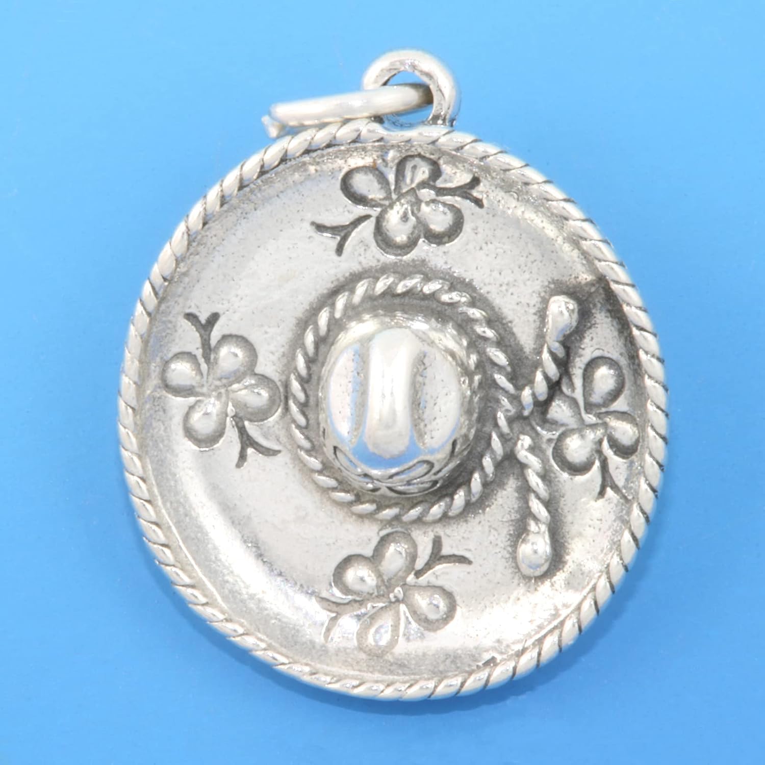 Mexican sombrero hat 3-dimensional .925 solid sterling silver charm with a 6 mm split ring attached. The charm is hallmarked and fits a traditional charm bracelet or a chain necklace.