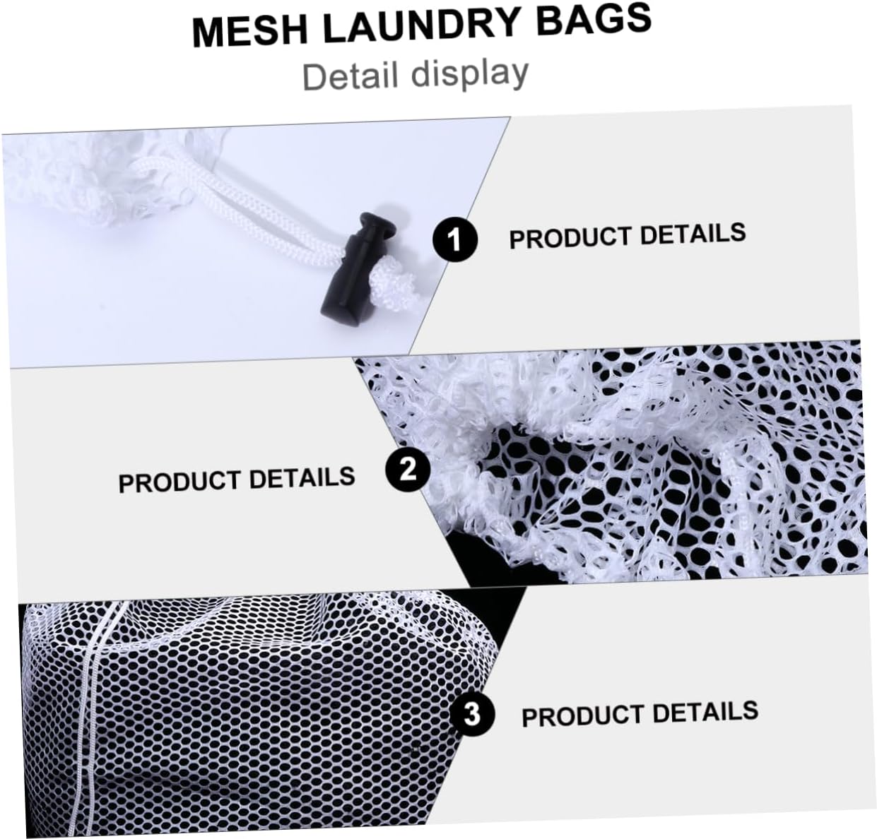 Package Include 8 X mesh laundry bags Characteristics -Color: White Mesh Wash Bag -Material: Polyester Drawstring Laundry Bags -Size: 50.00X70.00X0.10cm/19.65X27.51X0.04in Mesh Laundry Bags - The portable rope pulling opening, can be put into the washing machine, easy to use Drawstring Bags. - Perfect laundry bag for college , apartment , sorting laundry , etc Laundry Bags. - Fine structure mesh is even and fine, with strong protective, suitable for T-shirts, shirts, sweaters, stockings, towels, etc Storage Bag. - It can also be used as a storage bag for beach items, , sporting gear, blankets, travel Home Mesh Bag. - Drawstring bags can protect your clothes from tangling, snagging, or pulling in washer or dryer Travel Mesh Bag.Goods DescriptionMesh Wash Bag The drawstring design closure ensure its use and protect your clothes.Home Mesh Bag They are suitable for basket, hampers, sorters and storing sleeping bags, pillows, blanket, comforter, sweater, towel, , shell, panties, etc.Travel Mesh Bag These different size laundry bags are fit over the sides of all clothes