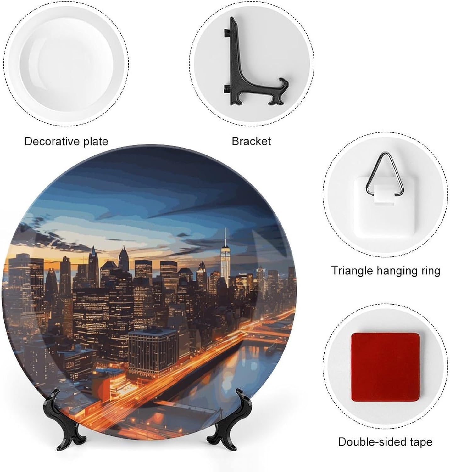 Our versatile ceramic New York City Scenery plates are made of smooth ceramic material. The lightweight bone china plates can be easily placed anywhere you like, showcasing their decorative charm.This bone china dessert plate is available in four sizes: 6 inches, 7 inches, 8 inches, and 10 inches, making it an ideal choice for display items.Personalized decorative plates, perfect for displaying handicrafts, are an ideal choice for home décor. This vertical ceramic plate makes a wonderful gift for housewarmings, anniversaries, weddings, birthdays, Thanksgiving, New Year's, or any holiday.This French country-style ceramic plate is suitable for decorating or using in living rooms, offices, hallways, dining rooms, entrances, hotels, holiday homes, and other places.