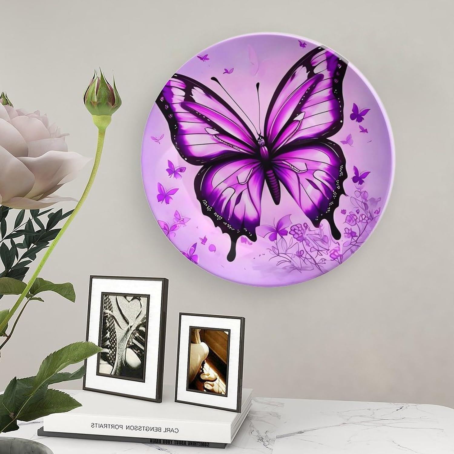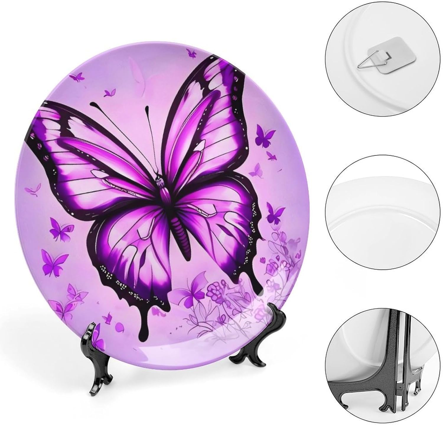 Our versatile ceramic Purple Butterfly plates are made of smooth ceramic material. The lightweight bone china plates can be easily placed anywhere you like, showcasing their decorative charm.This bone china dessert plate is available in four sizes: 6 inches, 7 inches, 8 inches, and 10 inches, making it an ideal choice for display items.Personalized decorative plates, perfect for displaying handicrafts, are an ideal choice for home décor. This vertical ceramic plate makes a wonderful gift for housewarmings, anniversaries, weddings, birthdays, Thanksgiving, New Year's, or any holiday.This French country-style ceramic plate is suitable for decorating or using in living rooms, offices, hallways, dining rooms, entrances, hotels, holiday homes, and other places.