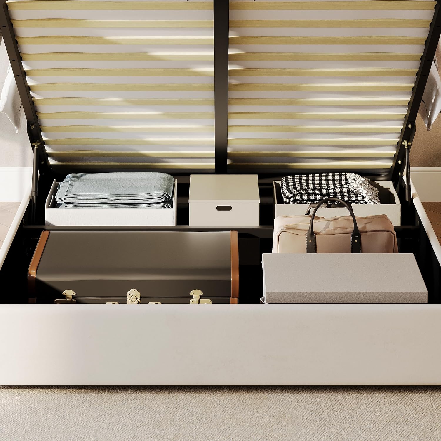 🐡The Hydraulic Storage Bed combines practical storage solutions with contemporary design elements. Perfect for urban dwellers and those with limited bedroom space, it offers ample storage without sacrificing style. Whether you're updating your bedroom decor or looking to maximize storage space, this bed promises durability, functionality, and elegance.Bed Size: Full BedMaterial:VelvetWeight Capacity:500 LBSAssembly Required Full Assembly NeededSuggested Number of People for Assembly:2Recommended mattress thickness:10"Package Number:1Country of Origin:ChinaColor:BeigeStorage Space:9.8"Notes:1. Manual measurement has been used, there may be some reasonable error.2. All the pictures are taken by actual samples, slight chromatic aberration may occur due to lighting or display.