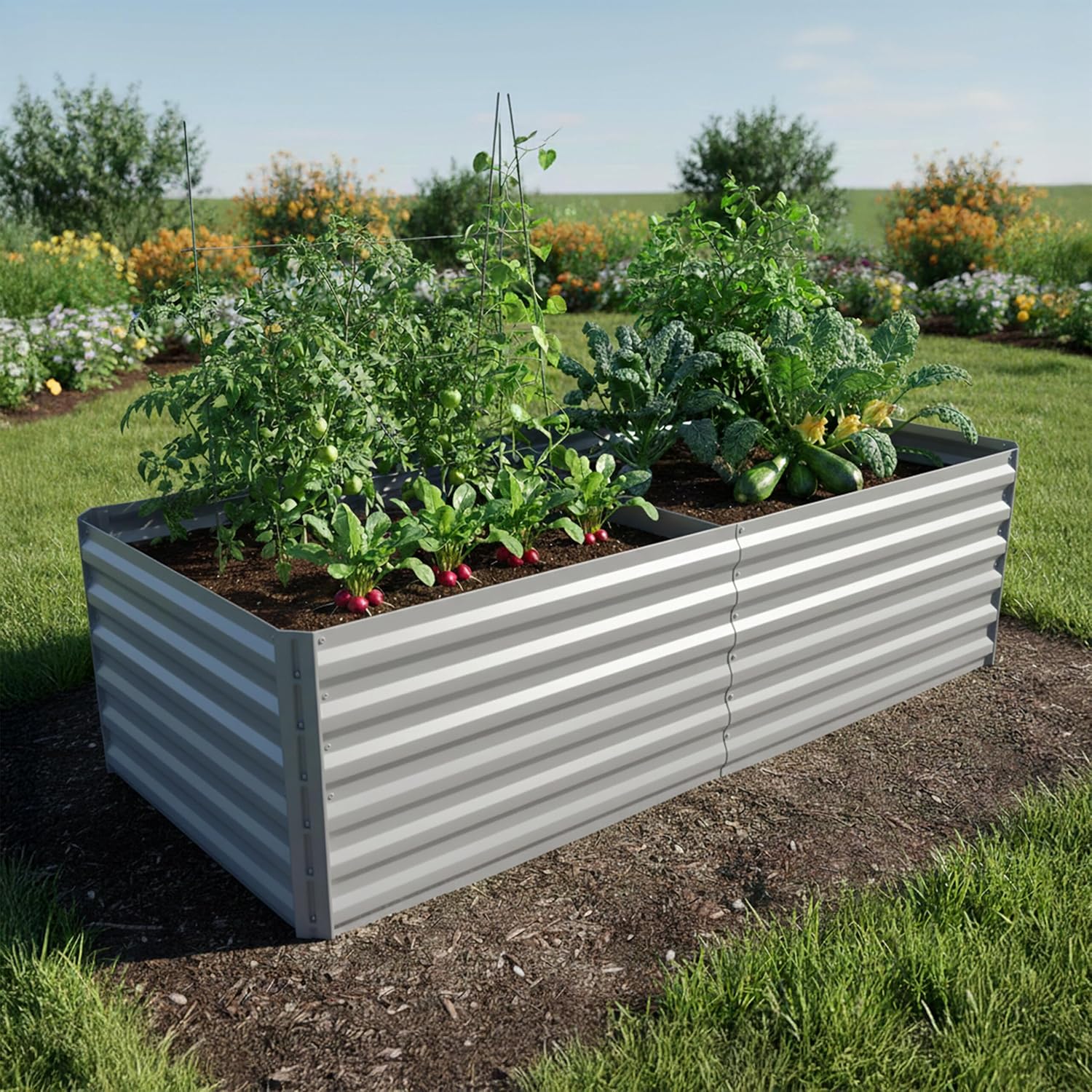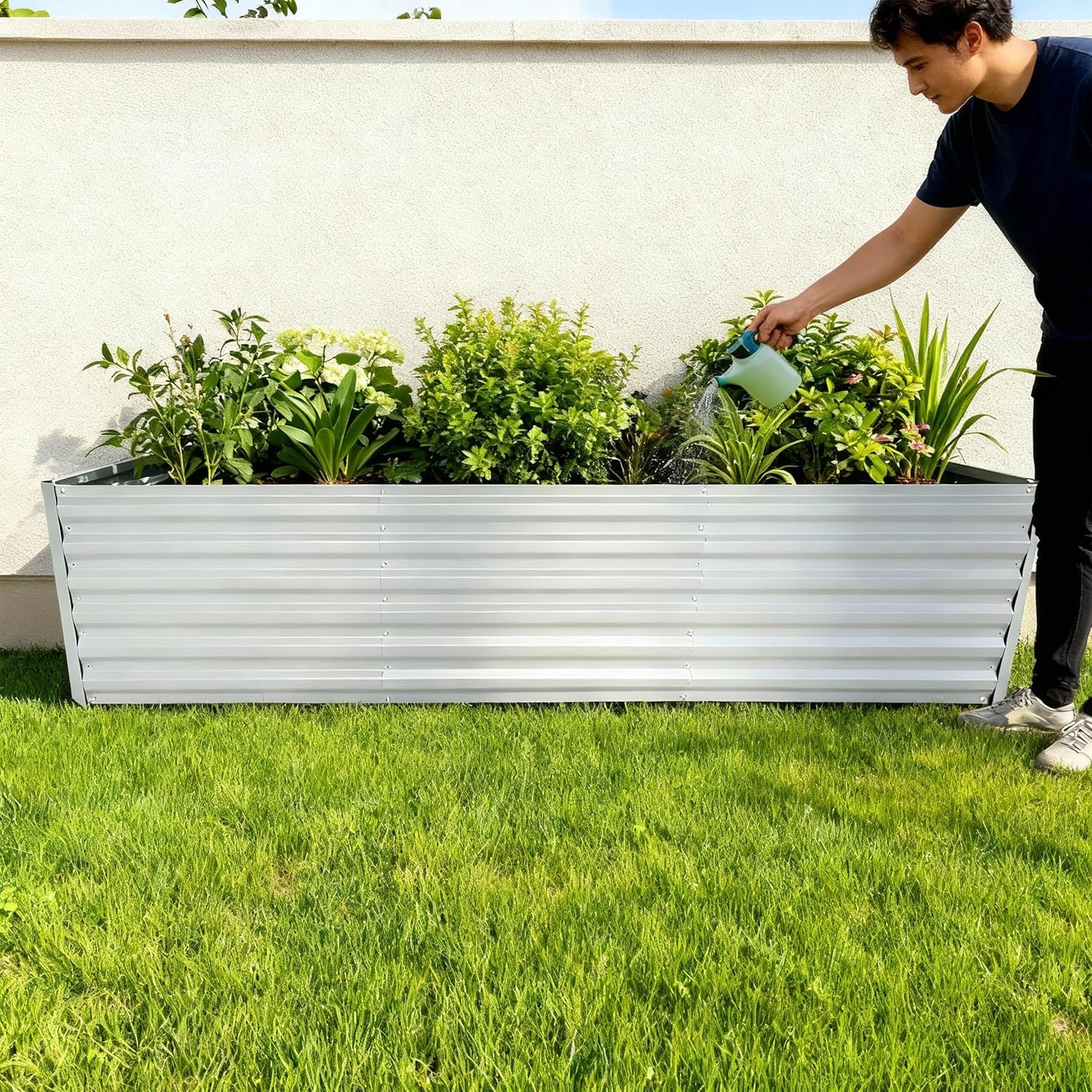 With the plant bed you can create ideal growing conditions for vegetables, herbs or flowers. The open design promotes water drainage and root growth and also creates contact with the ground, which guarantees optimal nutrient absorption. Thanks to the rotting of the organic material inside the vegetable bed, heat is created that promotes growth and ensures higher yields. The raised position protects your plants better from weeds and pests and allows back-friendly gardening. Raised bed in detail: dimensions H x W x D: approx. 57 x 180 x 90 cm. Weight: approx. 18 kg. Material: galvanised iron. Various colours available. Large garden bed made of metal. For planting herbs, vegetable plants or flowers. Generous growing area is suitable for a variety of planting. Bed in raised position allows back-friendly gardening. High edge provides protection against weeds and pest infestation. Open base for good water drainage and better nutrient absorption. Layer. system for natural and warmth - better yields - robust, galvanised iron is rust-proof, weatherproof and durable - integrated support struts provide additional stability and support. Box contents: 1 x flower bed in individual parts. With instructions and mounting material. Decorative items are not included