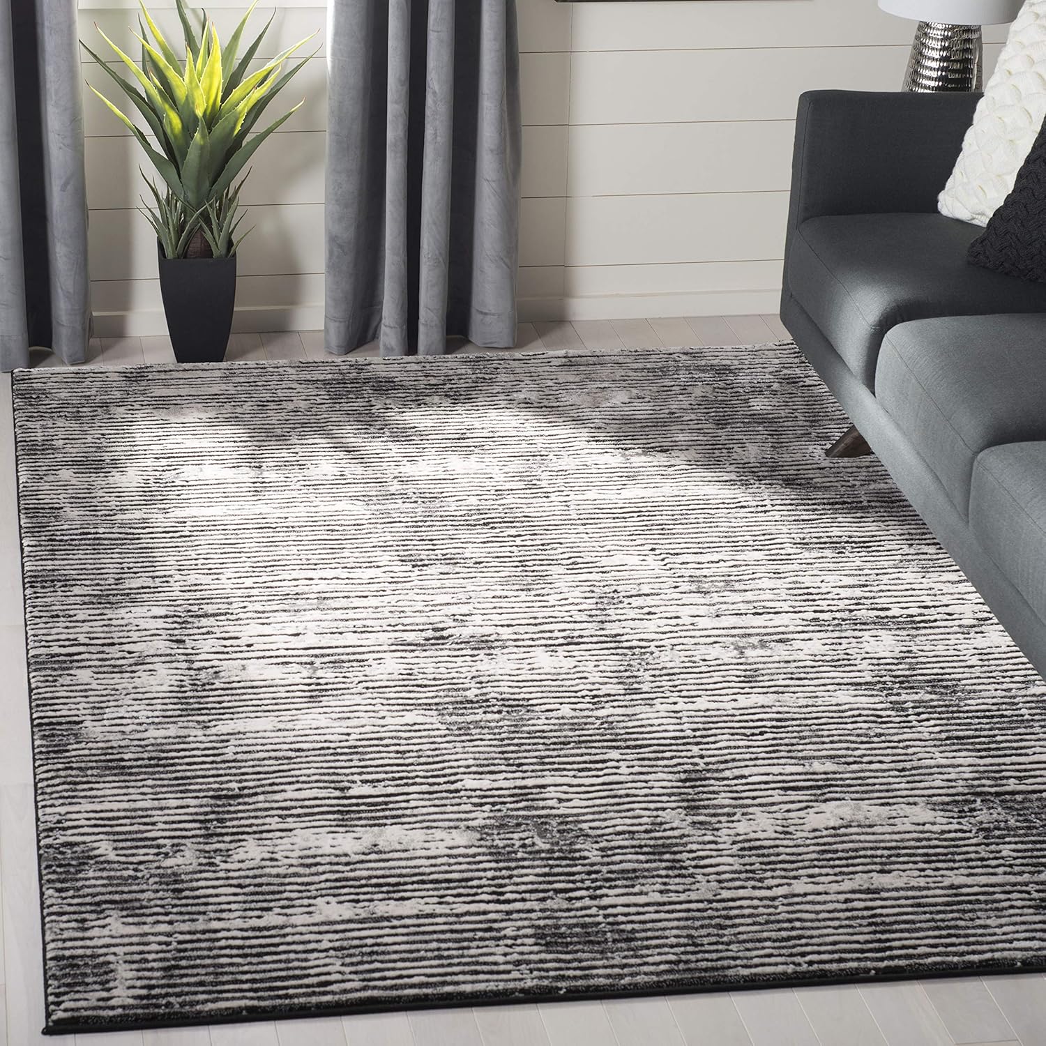 Incorporate stunning shades of silver and grey into your home with SAFAVIEH’s Lurex Collection of area rugs. A textured high-low pile adds dimension, while its polyester and polypropylene fibers exude a silky sheen from every angle. Perfect for any contemporary or modern décor, these rugs work well in the living room, bedroom, home office, or dining room.