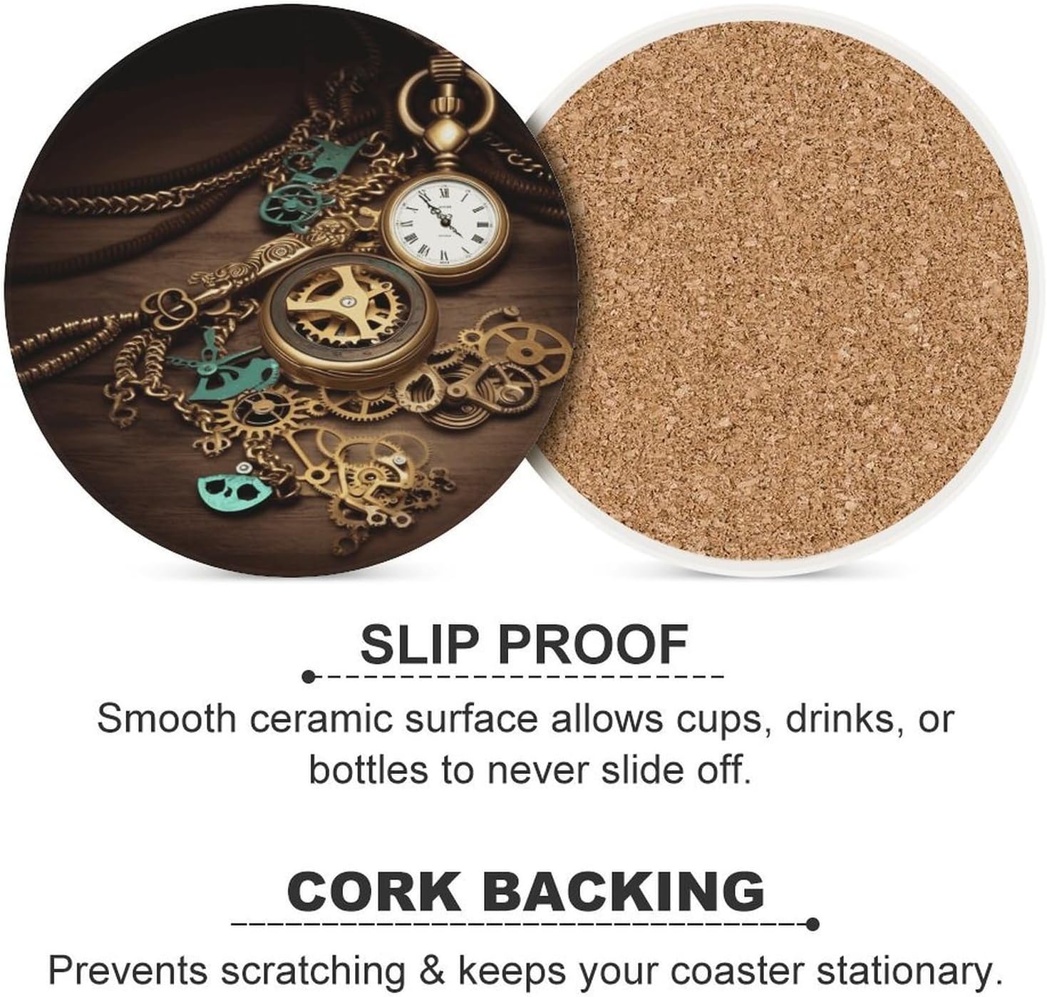 Introducing our ceramic coaster, a practical and elegant addition to your home and office that combines functionality with simple charm. Crafted with premium ceramic, this coaster features a smooth and sleek surface that not only looks exquisite but also effectively insulates heat, keeping your desktop away from the damage of hot drinks. The added cork bottom is carefully designed to prevent direct contact between the ceramic and the desktop, avoiding scratches and wear on your valuable furniture, while also enhancing friction to keep the coaster and cup stable without slipping.With its universal size, the ceramic coaster is suitable for various cup types in daily life, whether you are enjoying a cup of hot coffee in the morning, a cup of warm tea in the afternoon, or a glass of cool white wine in the evening, it can perfectly fit your cup and provide reliable protection. Unlike ordinary coasters, our ceramic coaster is easy to maintain—any accidental spills can be wiped clean in seconds with a damp cloth, no tedious cleaning steps required, saving you time and energy.This ceramic coaster is not only a practical daily necessity but also a subtle decorative piece. It is suitable for decorating your kitchen, living room, bedroom, office, dining room and bar, adding a touch of simplicity and elegance to any space. Whether for personal use or as a small gift for friends and family, the ceramic coaster is a perfect choice that combines practicality and aesthetics, bringing convenience and beauty to your daily life.