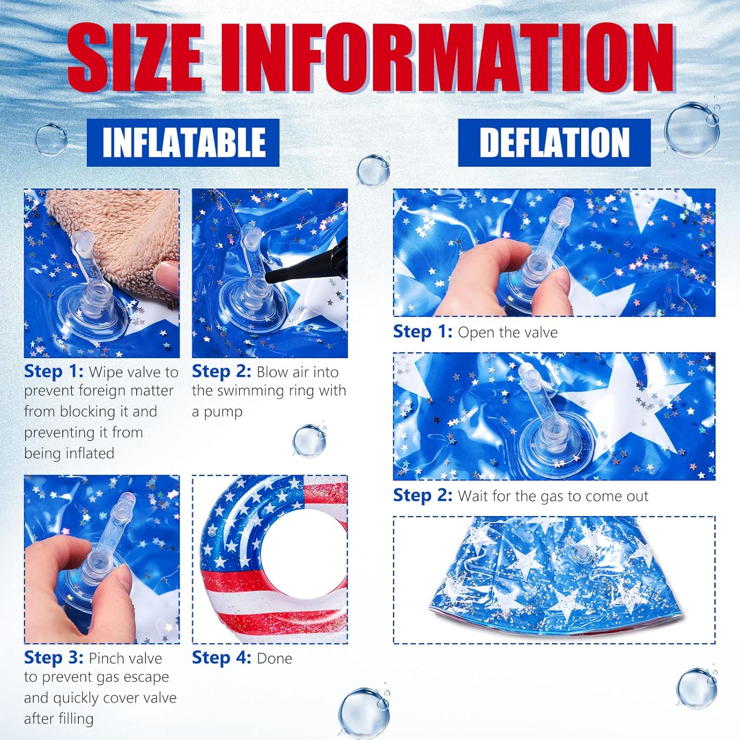 Features: A thoughtful gift: It is a thoughtful present for you to give your friend, they will be grateful to receive such a gift that has bright color and easy to install. Suitable occasions: The design of the Independence Day which can cater the theme of Independence Day well, create lively festival atmosphere and bring you meaningful memory. Specifications: Material: PVC Color: as the picture shows Size: approx. 90 x 23 cm/ 36 x 9 inches when inflated Package includes: 6 x Pool swimming tubes Notes: Manual measurement, please allow slight errors on size. The color may exist a slight difference due to different screen displays.