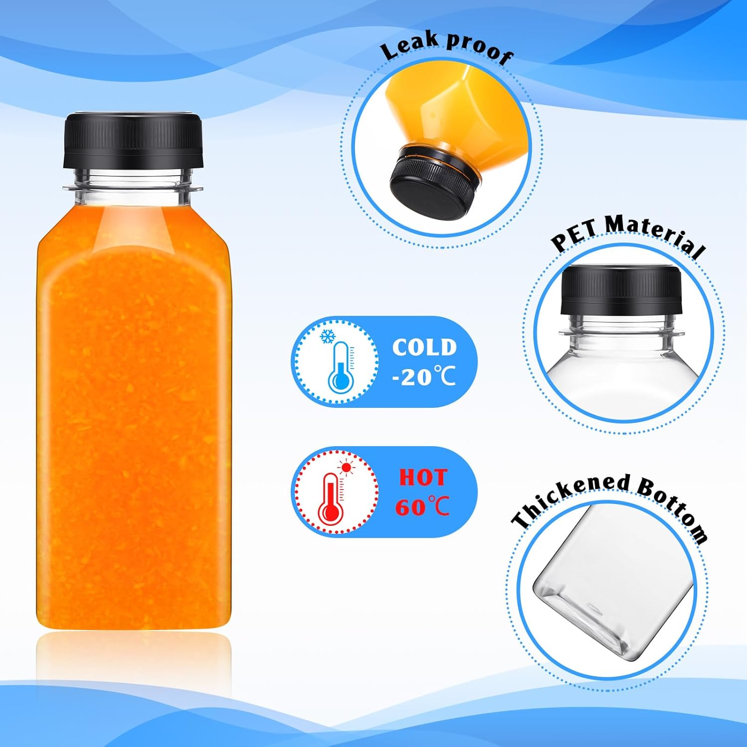 Features: Quality material: These plastic juice bottles with caps are stable in structure, strong enough against breakage, wear and scratch, safe and tasteless, sturdy and drop resistant, serving you for a long time. Gift idea: Our refillable bottles for drinks are considerate and pragmatic presents to your family members, friends who love juice and other kinds of drinks, they will be happy to receive them, getting relationships and emotions closer with each other. Specifications: Material: PET plastic Color: clear, black Size: about 300 ml/ 10 oz in capacity Package includes: 200 x Plastic juice bottles Notes: Our juice bottles are not dishwasher safe. Manual measurement, please allow slight errors on size. The color may exist a slight difference due to different screen displays.