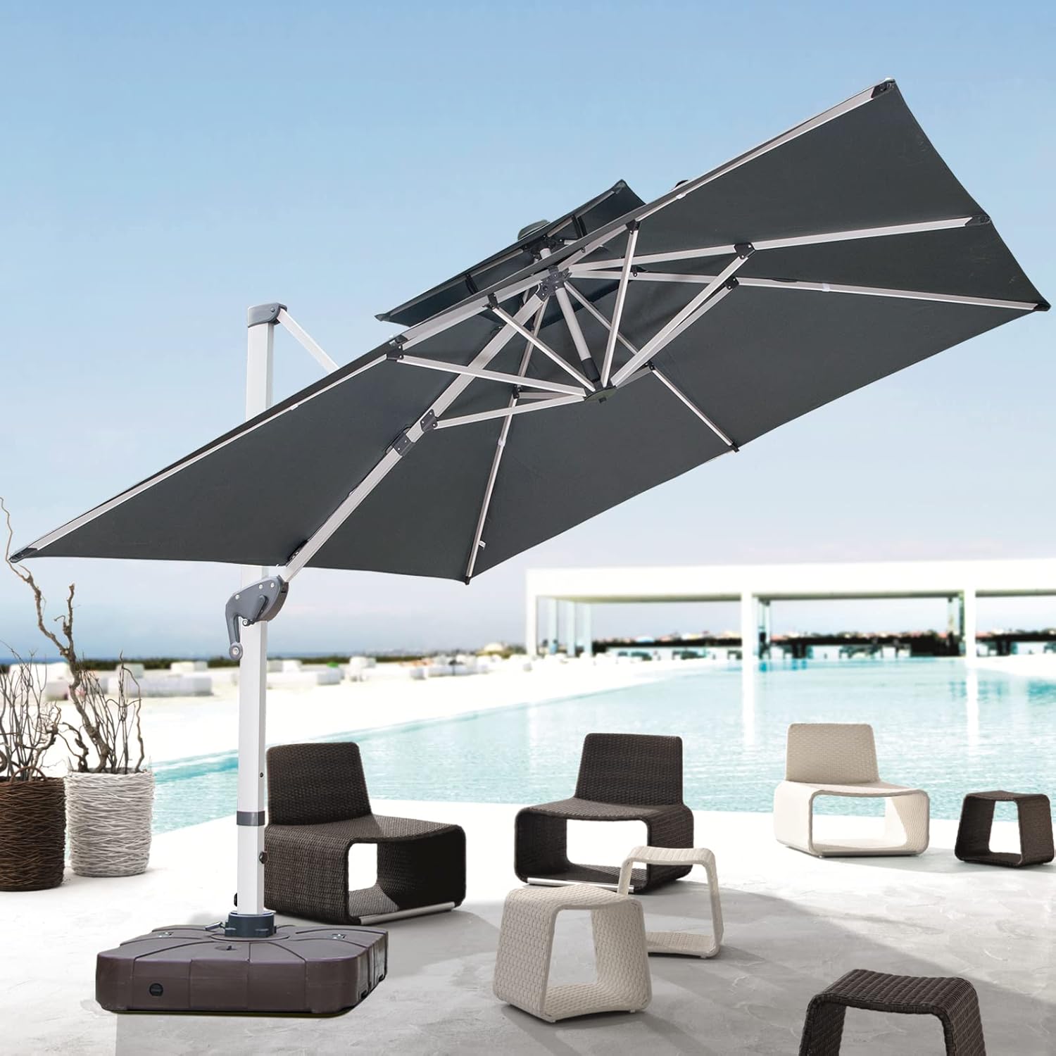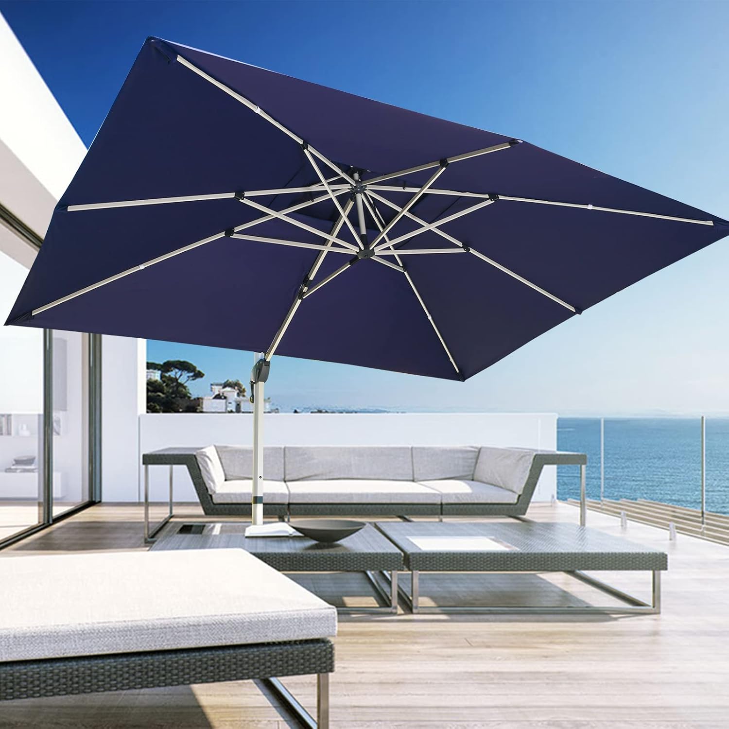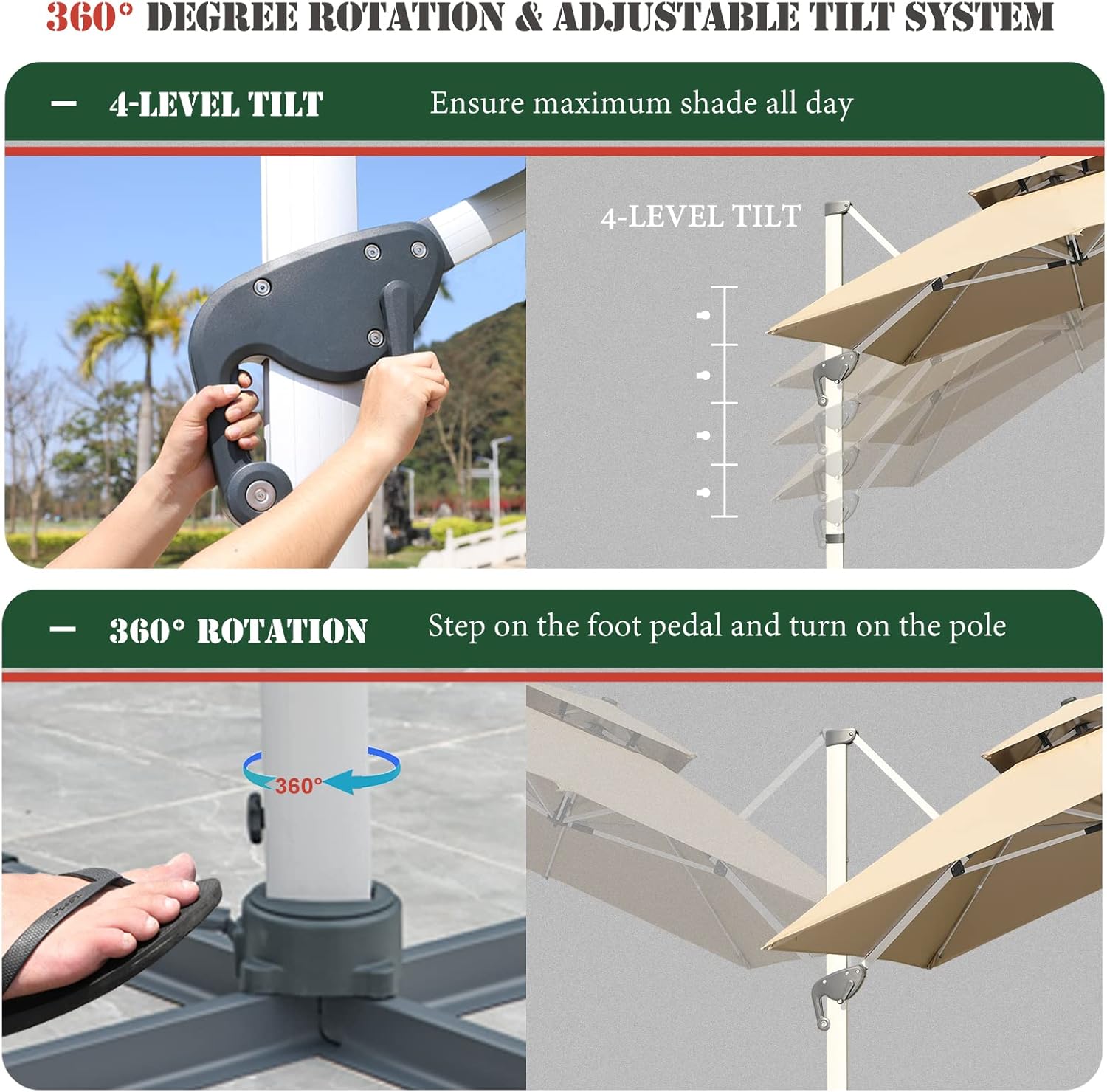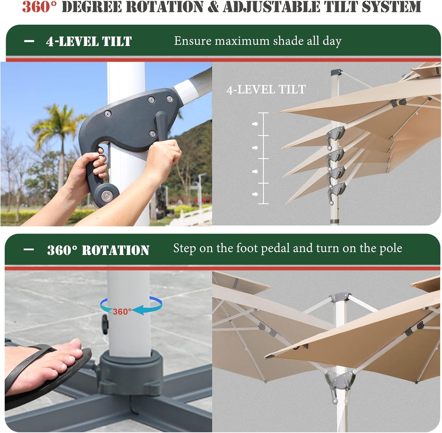 | Special Features | Sturdy Aluminum Pole, Steel Ribs, Double-layered Canopy with Ventilation, Solar-powered LED Lights, 360-degree Rotation, Adjustable Incline System |