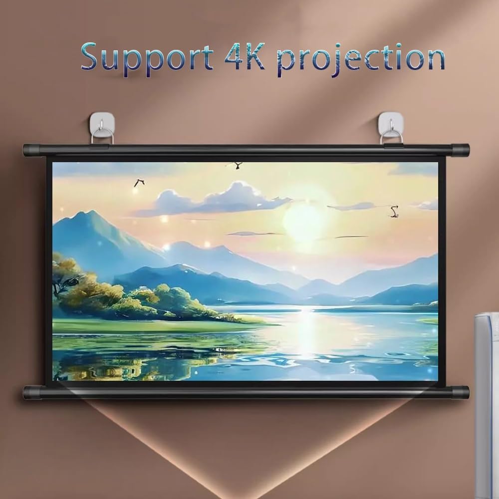 HD projection screen, the surface of the projection screen cloth is made of white fiberglass, it will not roll or warp even after long time use. The projection screen is small in size with a roll-up design, perfect for carrying to parties on the go.Product Name: Projection ScreenMaterial: HD white fiberglassSize: 30 inches 4:3, 30 inches 16:9, 40 inches 4:3, 40 inches 16:9, 50 inches 4:3, 50 inches 16:9, 60 inches 4:3, 60 inches 16:9, 72 inches 4:3, 72 inches 16:9Installation: hanging installationPackage: 1 projection screenNotes:1. This product due to the shooting light problem, the physical color and the picture will be different, please take the physical color shall prevail.2. The size of the projection screen cloth in the picture is measured manually, there will be 1-3cm error, do not shoot if you mind.