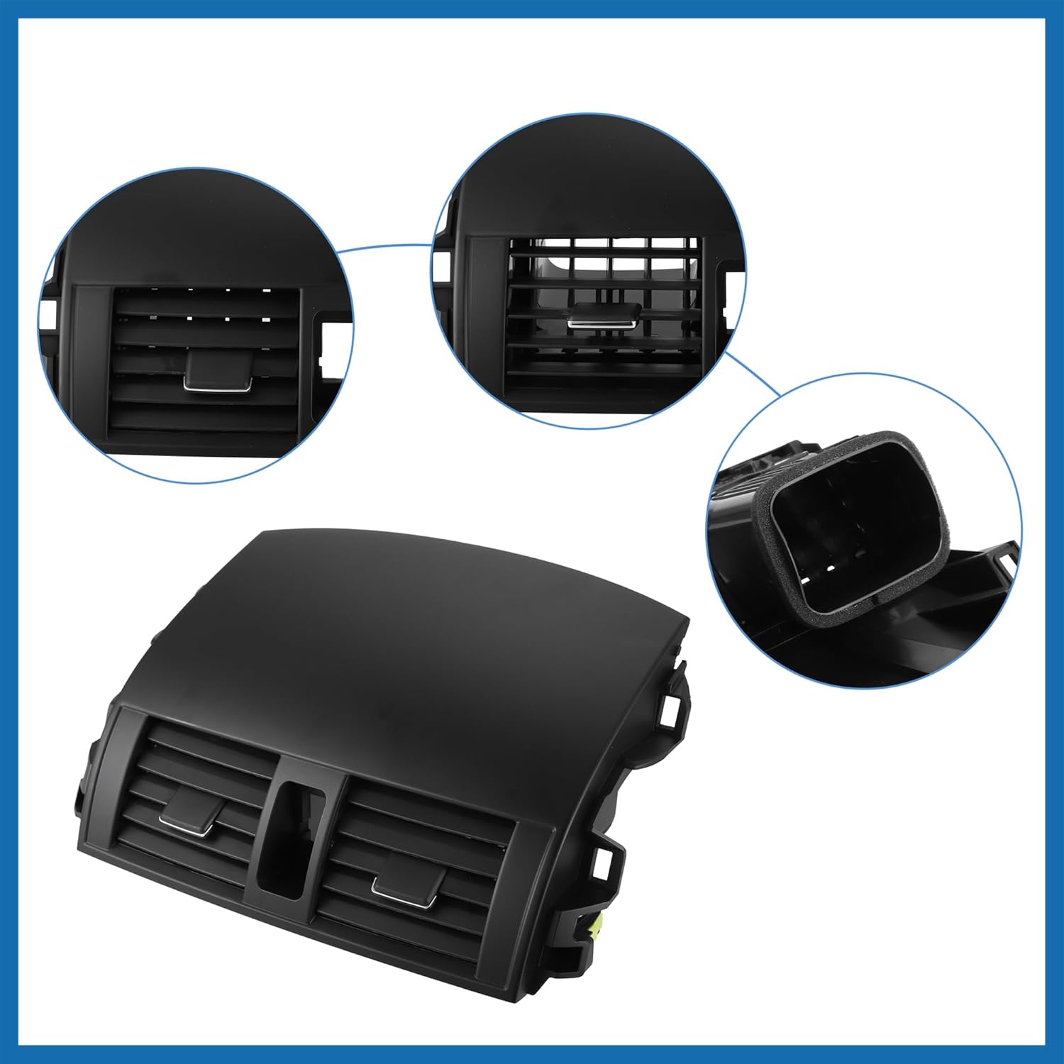 Features:Replace the damaged car air conditioner air outlet panel, effectively refresh air and prevent dust from flying out from the hood vent.Made of good reliability ABS plastic, it's durable, sun-proof and wear resistance.Easy to install and use, no modification needed and no harm to your car.OE Number: 55663-02060This is a non-OEM product, accessory only!Specification:Color: BlackMaterial: PlasticSize: 25x17x11cm / 9.84"x6.69"x4.33"(L*W*H)Fit for:for Toyota Corolla 2009-2013Package Includes:1 Pcs Center Dash A/C Outlet Air Vent Panel