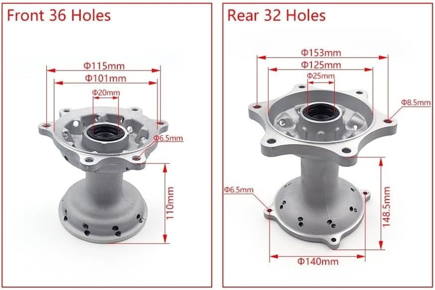 Fit For HONDA CRF250R 2004-2019Fit For HONDA CRF250X 2004-2017Fit For HONDA CRF450R 2002-2019Fit For HONDA CRF450X 2005-2017Front: 36 Holes, 20mm Axle HoleRear: 32 Holes, 25mm Axle HoleFront Size: 115*110*101*20*6.5mmRear Size: 148.5*140*125*25*8.5*6.5mmFront 36 Holes OEM: 44635-MEN-840Rear 32 Holes OEM: 42635-KRN-710Packaging quantity: 1PcsOrigin: Mainland China