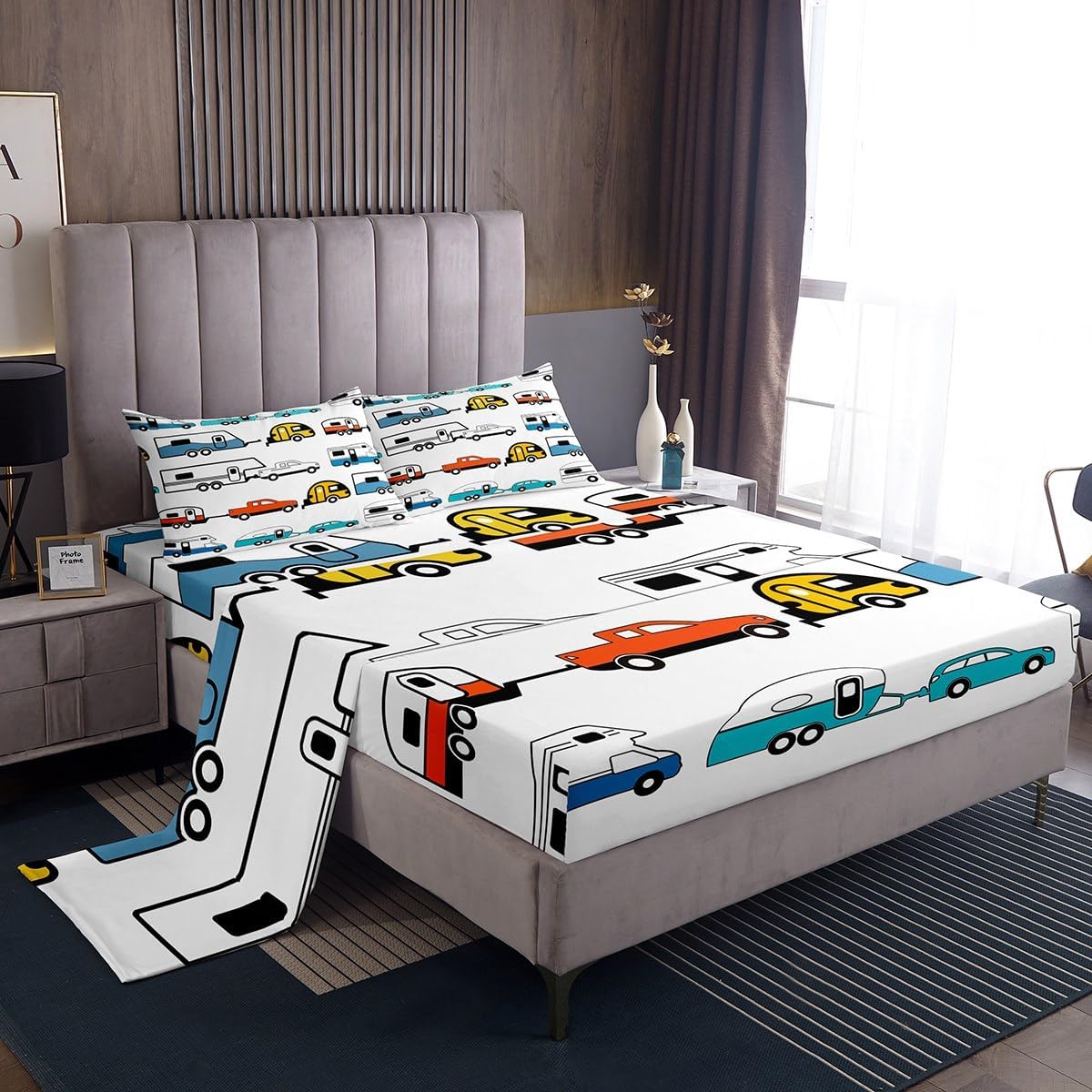 Size Information Twin size: 1 Fitted Sheet 39"x75"x16", 1 Flat Sheet 96"x66", 1 Pillowcase 20"x30". Full size: 1 Fitted Sheet 54"x75"x16", 1 Flat Sheet 96"x81", 2 Pillowcases 20"x30". Queen size: 1 Fitted Sheet 60"x80"x16", 1 Flat Sheet 102"x90", 2 Pillowcases 20"x30". King size: 1 Fitted Sheet 78"x80"x16", 1 Flat Sheet 106"x90", 2 Pillowcases 20"x36". Versatility We have many kinds of styles for you to choose. You can easily find a product that suits the style of your room. The item is not only Suitable for your home, bedroom, guest room, living room, etc or rv, your families, friends, relatives, boyfriend, girlfriend. Modern Design The luxury aesthetic bedding sheets are made reactive printing and dyeing process. The pattern is clear, the color is and bright, which will not fade after repeated washing. Personalized As a manufacturer of digital printed home textiles, we follow current trends and bring you the latest and stylish home textile products. The item will make the room decorated in exquisite taste.