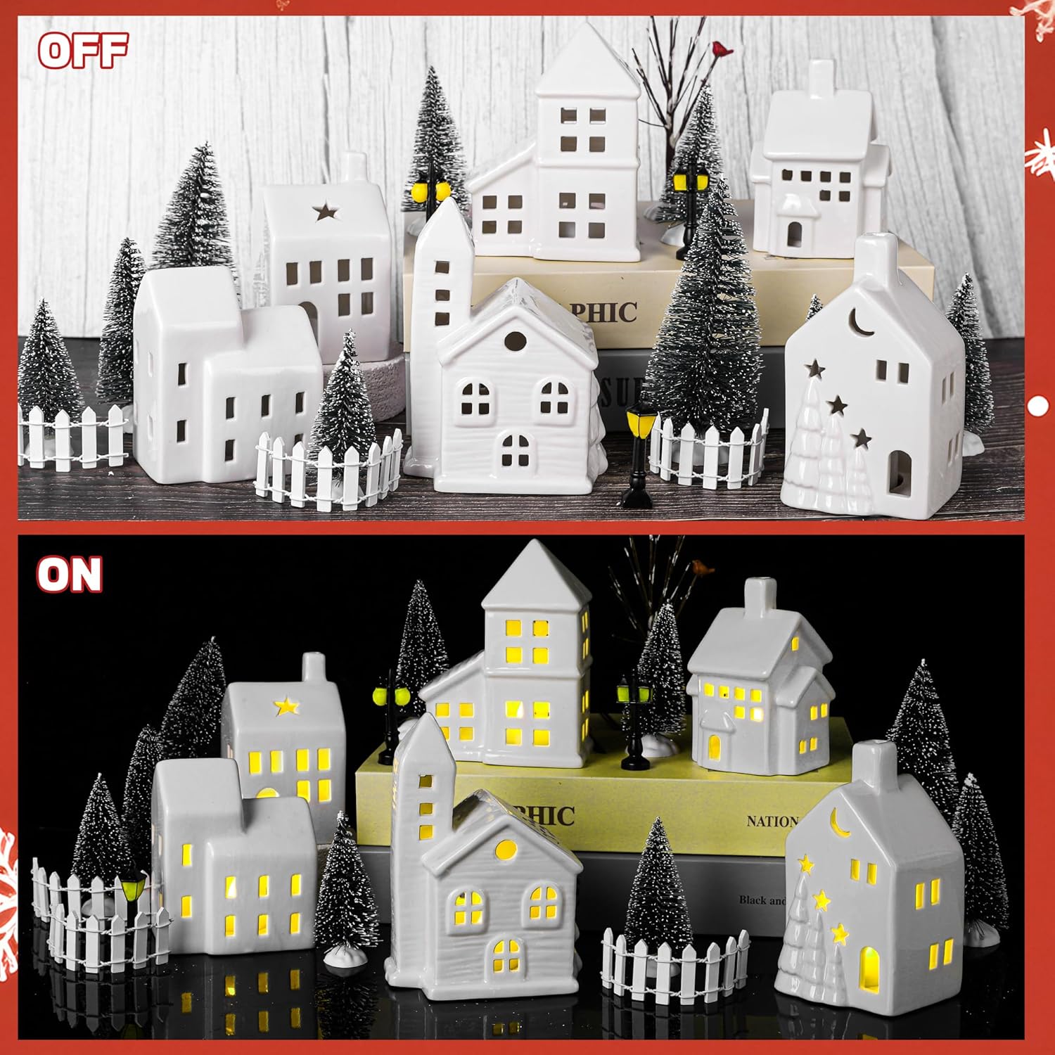 | Included Components | 6 x porcelain village houses, 14 x mini Christmas trees, 1 x red bird tree, 4 x street lamps, 5 x fence, 6 x LED tealights, 1 x remote control |