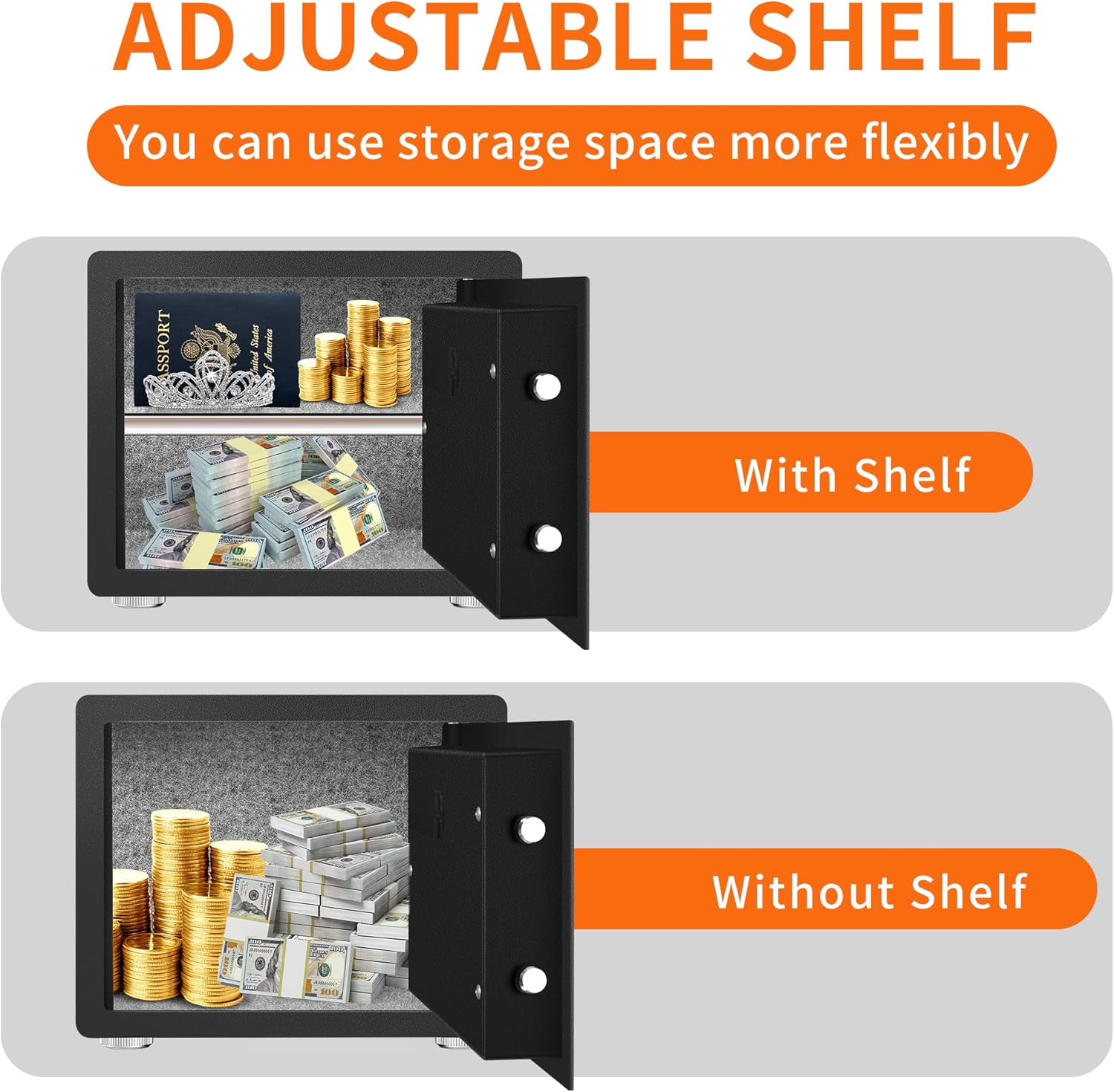 | Additional Features | Alarm System, Anti-Theft, Biometric Fingerprint, Combination Lock, Sensor Light |