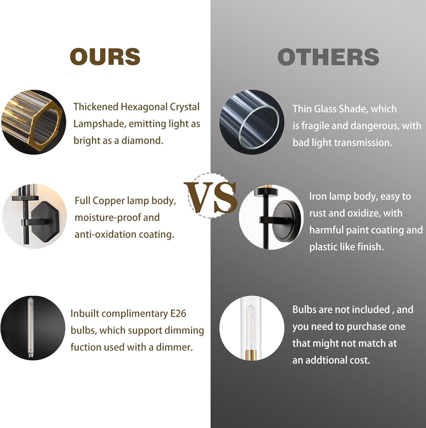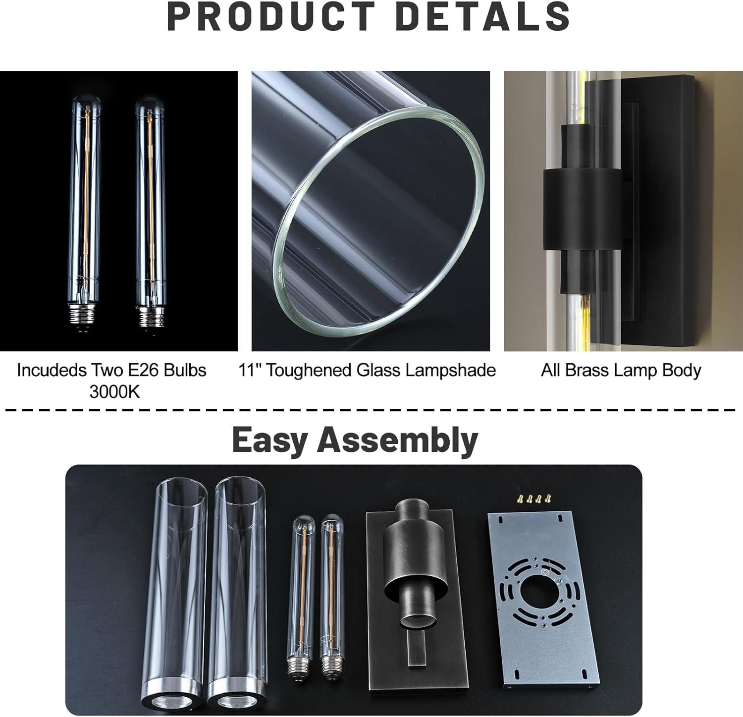 | Special Features | Brass material, Horizontal or vertical installation, Includes bulbs*2, Tempered glass lampshade*2 |