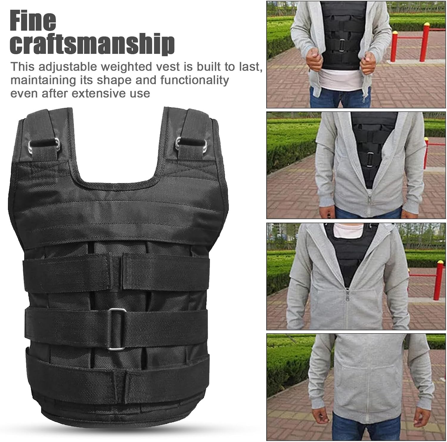 Package Include 1 x weight vest 12 x loading bags Features -Color:Black -Adjustable resistance: the vest allows for adjustments, enabling you to increase or decrease resistance based on your fitness goals and workout intensity weight vest for adults -Comfortable fit: featuring breathable and soft materials, this vest offers a comfortable fit that prevents chafing and discomfort during prolonged use -Enhanced functionality: its versatile design allows for integration with various workout routines and equipment, maximizing your training potential weight vest for men -Material:Oxford fabric -Size:55.00X44.00X0.30cm/21.61X17.29X0.12in -Product Info:Sports vest -construction: built with meticulous craftsmanship, this vest is highly durable, ensuring it withstands rigorous workouts without losing its fitness vest -Modern aesthetics: the stylish and sleek design of the vest makes it an attractive addition to your fitness wardrobe, suitable for both gym and casual wear weight vestGoods Descriptionwomens weighted vest for walking For those who enjoy walking as a form of exercise, the adjustable weight vest offers a simple way to increase the difficulty and effectiveness of your walks.training vest for women looking to enhance their walking routine, this vest can be adjusted to add just the right amount of weight.running weighted vests It's comfortable to wear and easy to adjust, making it a great choice for daily use