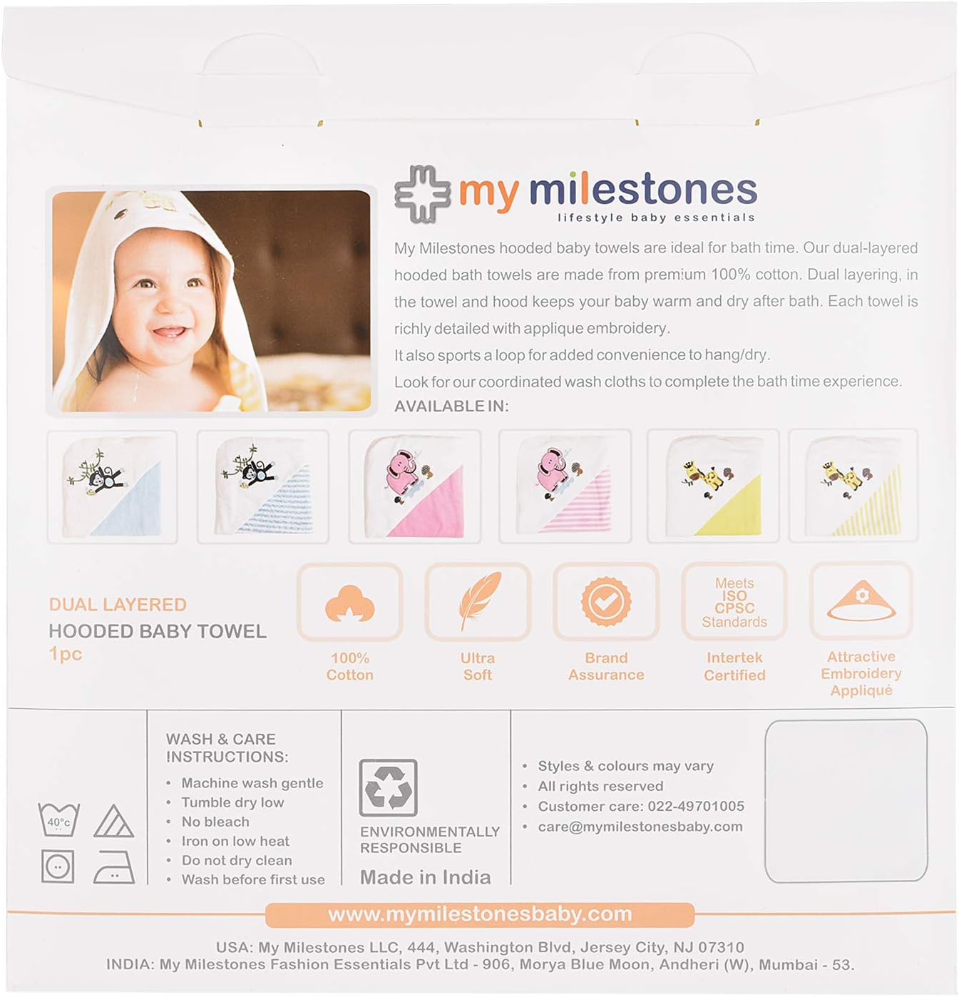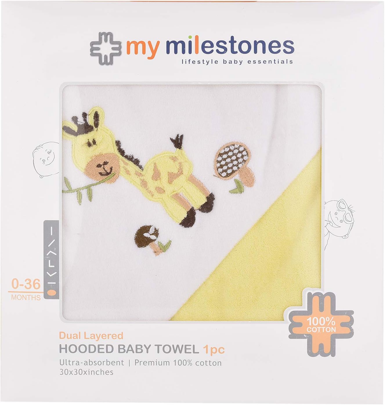 Pure cotton terry Towels are plush, super soft and ultra absorbant. Dual layered construction to keep your baby worm and snuggled after bath Attractive colour with matching applique embroidery Generous size of 76 x 76 cm useful till 3yrs age Loop to hang dry the towel"
