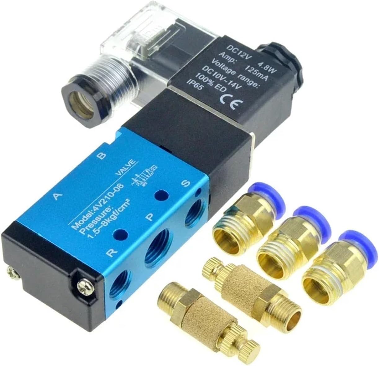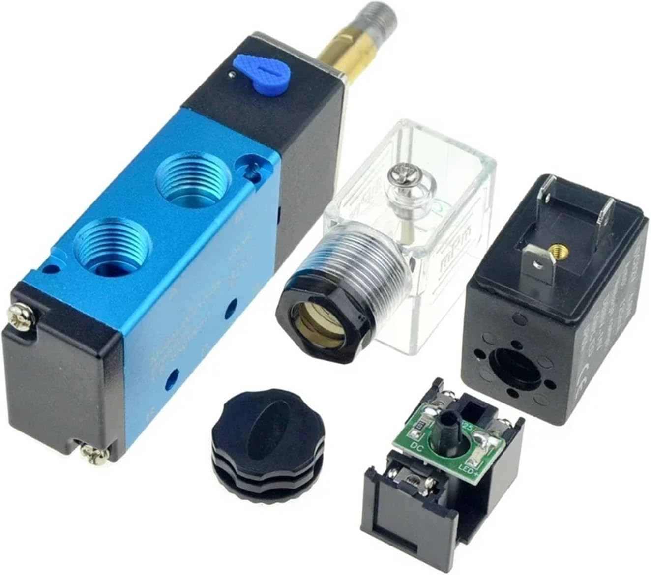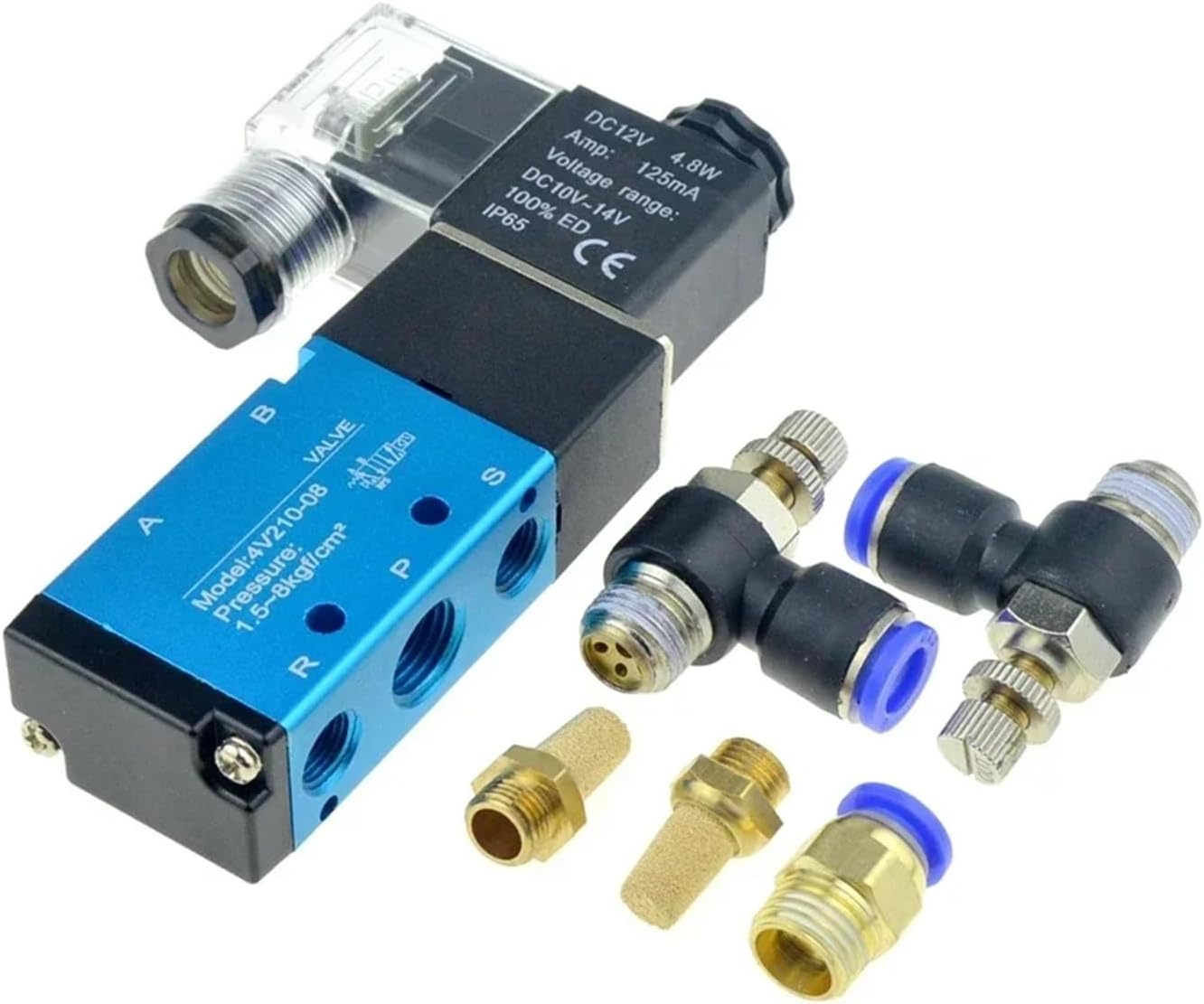 Control ValvesNote: P Port: Input Port, A. B Port: Output PortR. S Port: Exhaust PortP Port A Port, B Port S PortNO ( Normally Open)When the valve is power off, it is open, when the valve is power on, it is closed.P Port B Port, A Port R PortNC ( Normally Closed)When the valve is power off, it is closed, when the valve is power on, it is open.Operation pressure: about 1.47~7.84 barCan not work without air pressure Inlet=Outlet Port Size:4mm,6mm,8mm10mm,12mmCoil Voltage: Solenoid Valve Type: 5 Port 2 position(5 Way 2 Position) Operation pressure: 1.5 - 8kgf/cm^2Proof pressure: 1.5Mpa Temp: 5-50CBody Material: Aluminum alloy Package Content:1 PC Solenoid Valve3 PCS Quick Fitting2 PCS MufflerApplication:* Control appropriate flow and direction.* Electrically driven pneumatic power control. Type : ValvesModel Number : 4V210-08 Solenoid Valve Type : 5 Port 2 position Application : Pneumatic Power Control.Material : Aluminum alloyPort : 4mm,6mm,8mm,10mm,12mm OD HoseDIS : 30%