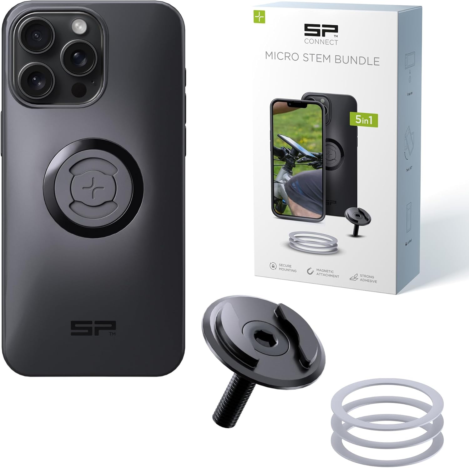 Discover the new SPC+ Micro Stem Bundle, your ideal companion for every bike ride. The SPC+ Phone Case is MagSafe compatible, 40% thinner and lighter, shock-resistant, and equipped with secure magnetic mounting. With the ultra-flat Micro Stem Mount, you can attach your smartphone safely to your handlebar for stable and convenient navigation. The bundle also includes 3 magnetic rings (white, gray, black) for flexible use anywhere you need.