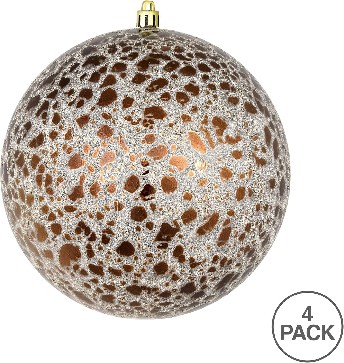 Vickerman 6" Mocha Crackle Ball Ornament. This ornament has a rough crackled finish that adds texture to any holiday decorating project and features a drilled and wired secure cap for reliable hanging. This unique ornament is an exceptional addition to any collection as it matches well with a variety of décor and goes perfectly on a holiday tree or in a decorative bowl. Includes 4 ornaments per bag.