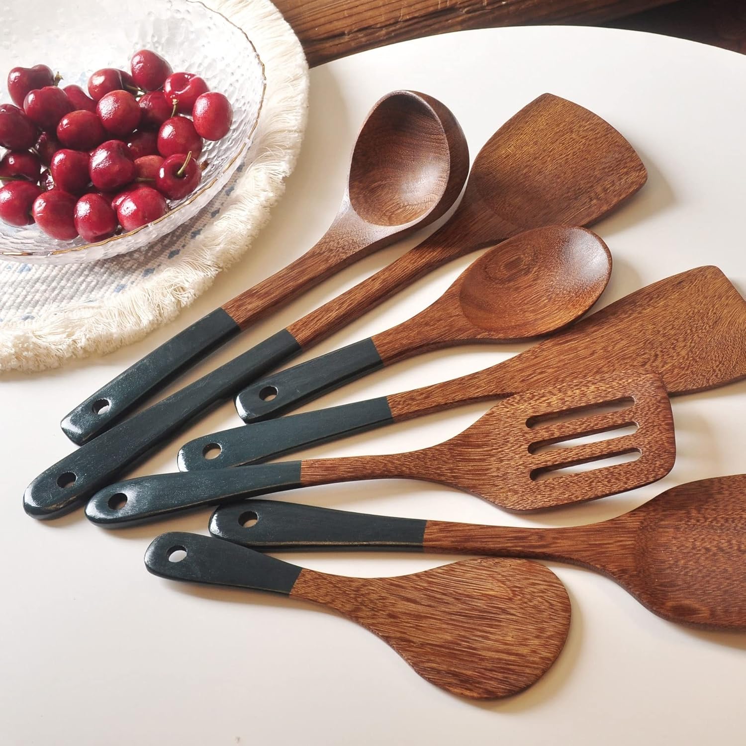 Product Name: Wood Spoons for Cooking, Cooking Spatulas 5 Pieces Wood Kitchen Utensils Sets Exquisite Cooking Utensils, let your life have a style, and can be a gift from-friends and relatives. Size: Rice Spatulas 22*8cm. Slotted Spatulas 30.5*7.5cm. Spoons 26*8cm, Cooking Spatulas 39*9.5cm, 32.5*7.5cm. Material: Wood. Package: Rice Spatulas * 1 Slotted Spatulas * 1 Spoons * 1 Cooking Spatulas * 2 If you have any questions about the product, please contact us.